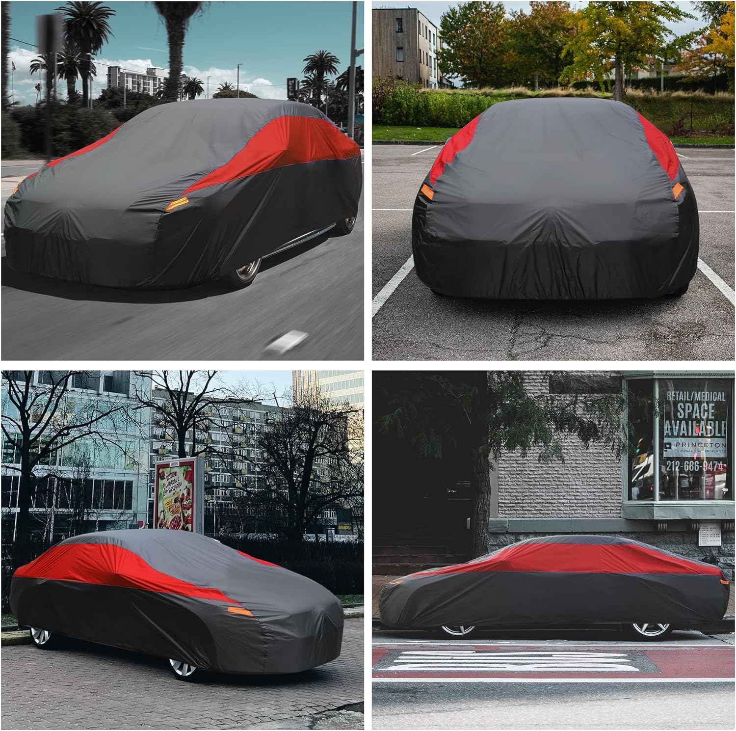 - ăPowerful Functionsă1> 4Pcs reflective stripes remind other people in the night, avoid accident in dark environment 2> The elastic hem at the bottom makes the car cover fit the car better 3> Windproof straps can prevent the cover from being blown away by the heavy wind 4> Double stitch technology which makes the fabric stitched tighter&non-tearable, more durable than other similar covers.