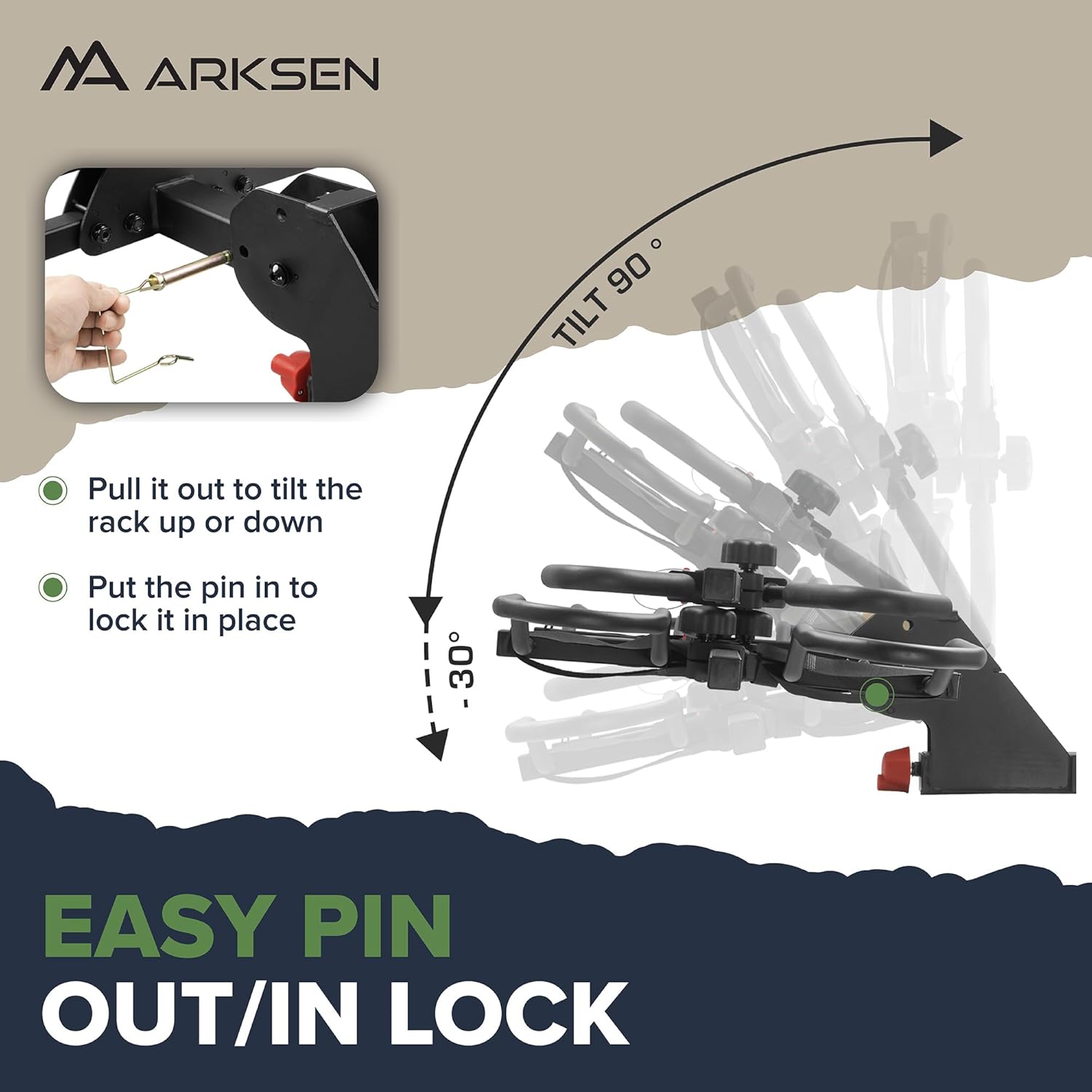 Arksen Hitch Mounted Smart Tilting 2-Bike Rack Platform Style 2" Foldable Carrier for Standard, Fat Tire, and Electric Bicycles -150 lbs Heavy Weight Capacity