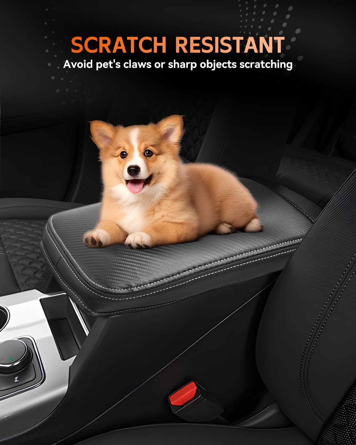 • [Excellent Scratch Resistance] The car Armrest Cover mat is made of high quality PU microfiber leather, thick enough to keep out pet paws, dust and sticky fingers. The surface is waterproof, wear-resistant and durable, breathable, light weight and easy to wipe clean of dirt.