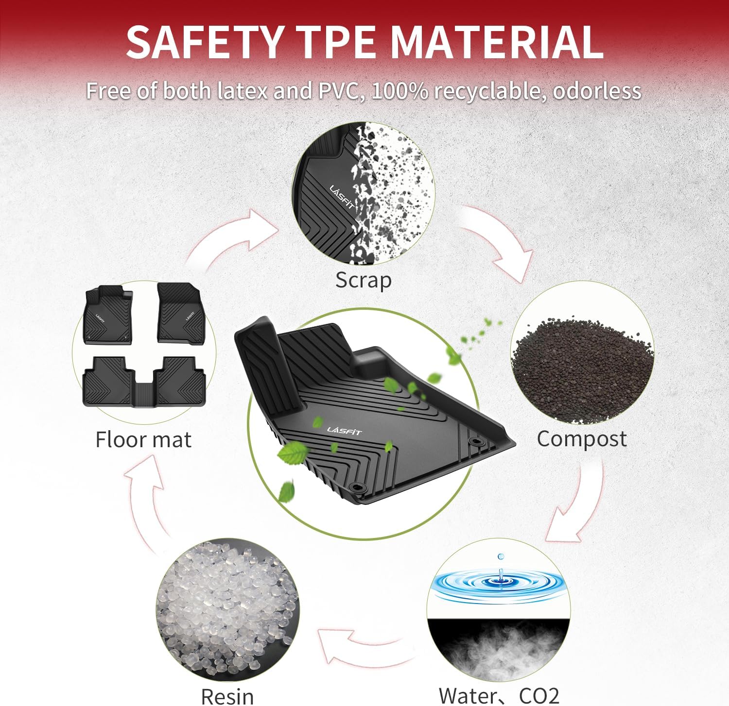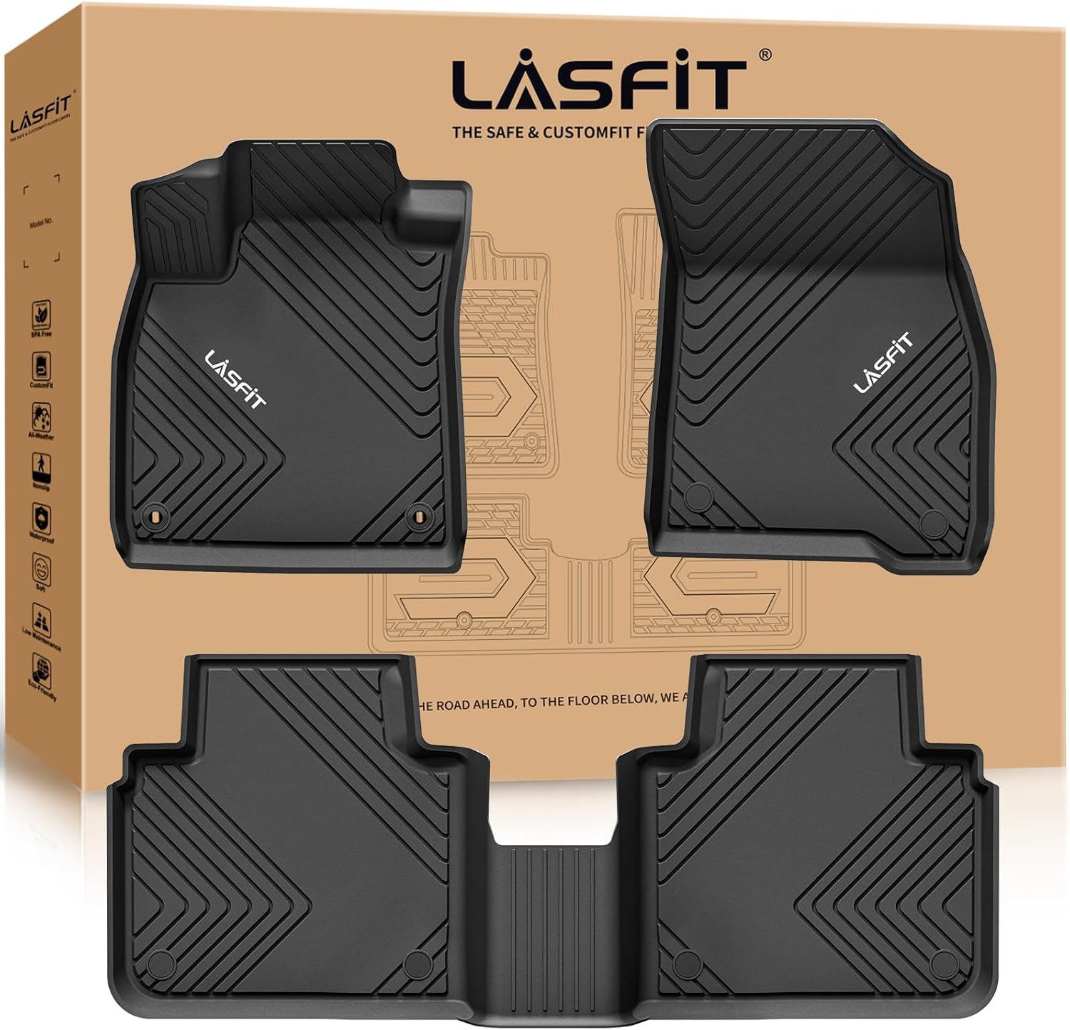 - FIRM YET FLEXIBLE - LASFIT Mats are made of innovative material, allowing our floor liners last long, way more elastic that they won't curl or end up buckling.