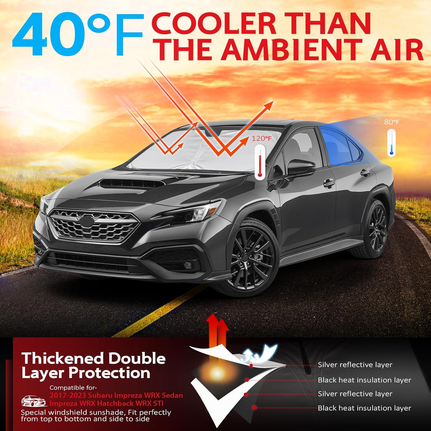 - KAYZT windshield sun shade is precise custom fit for 2017 2018 2019 2020 2021 2022 2023 Subaru Impreza WRX, Thoroughly covers every corner of the windshield, Tailored to accommodate rear view mirror, Ensuring a seamless and snug fit without obstruction, Must have car accessories for Subaru Impreza