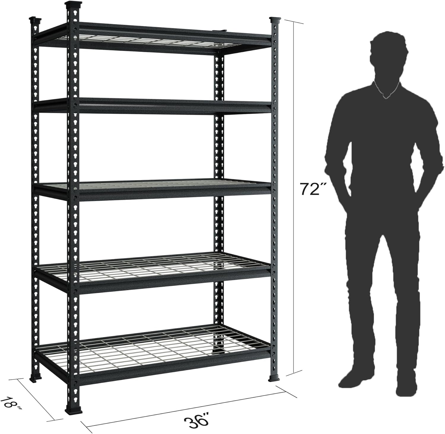 WORKPRO 5-Tier Metal Garage Shelving Unit, 36”W x 18”D x 72”H Storage Shelves, Adjustable Storage Rack Heavy Duty Shelf, 4000 lbs Load Capacity (Total), for Garage, Kitchen, Bathroom, Warehouse
