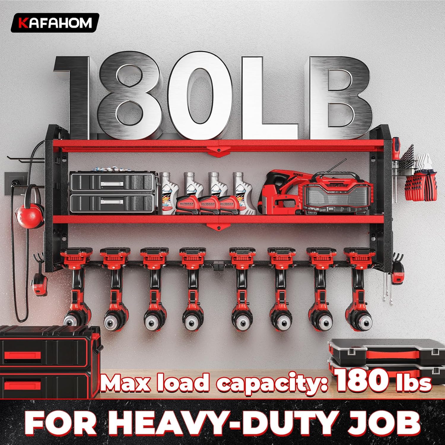 - Robust Construction: Built to last, KAFAHOM tool box organizers and storage wall mount features a sturdy alloy frame and reinforced double-layered metal plates for exceptional load-bearing capacity. It's the ideal utility cordless drill holder for a wide range of tools and accessories.