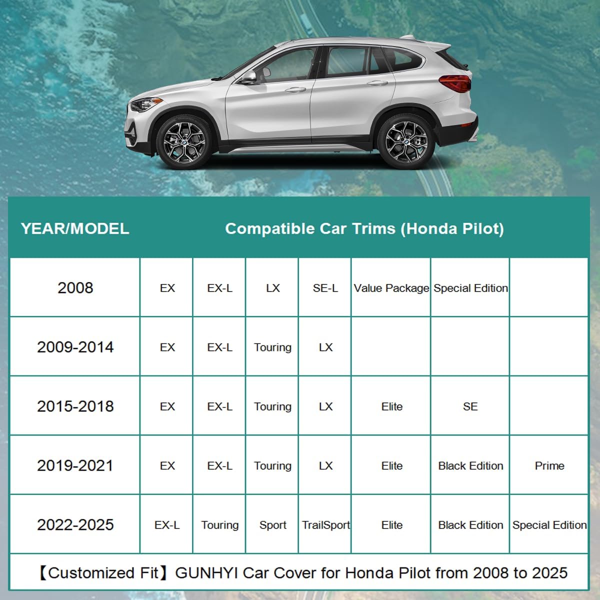 - ăCompatible withăThis Full Car Cover Custom fit for Honda Pilot from 2008 to 2025. Comes with a microfiber towel that you can use to clean your car, because if there is sand on the surface of the car before use, it may damage the paint.