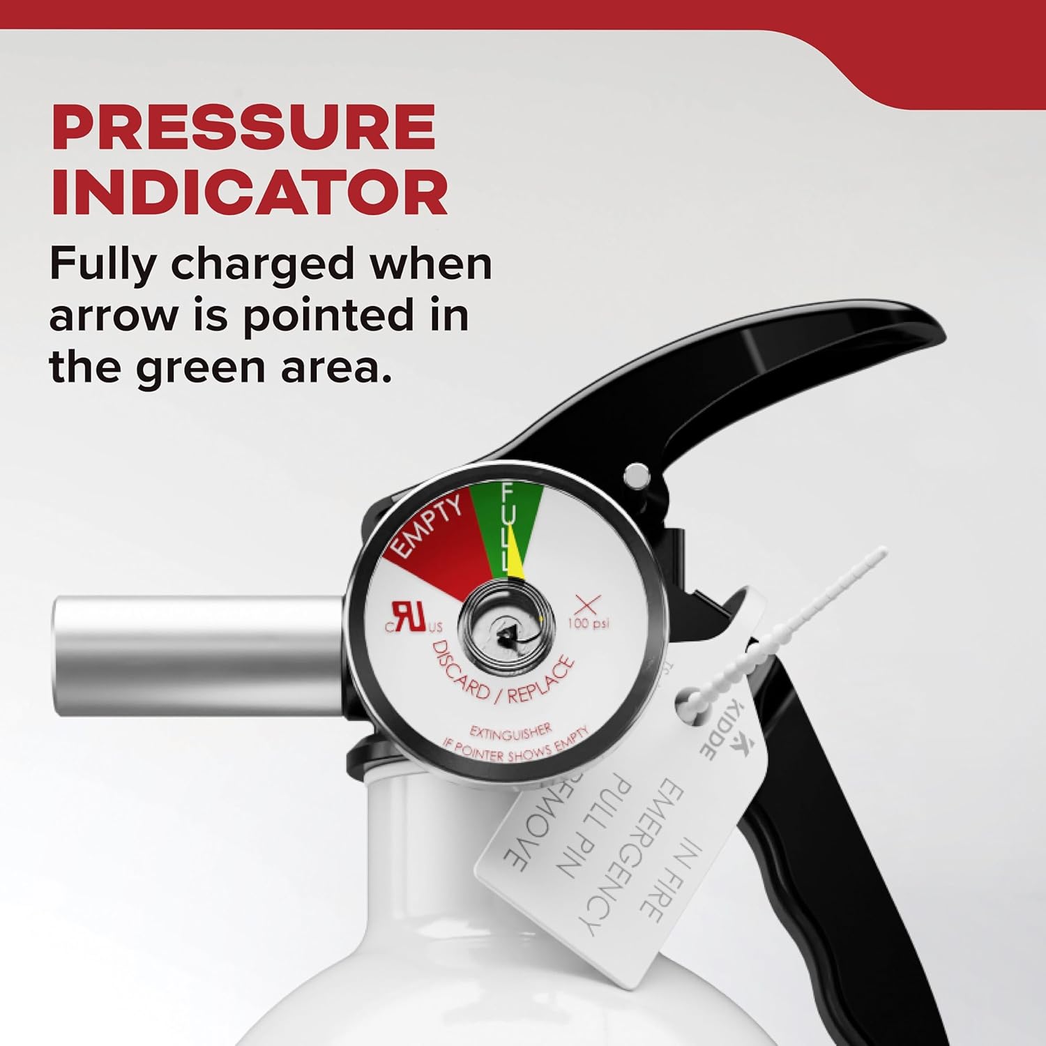 - All-Metal Construction: Durable valve assembly, rust, and impact-resistant handle & easy pull safety pin