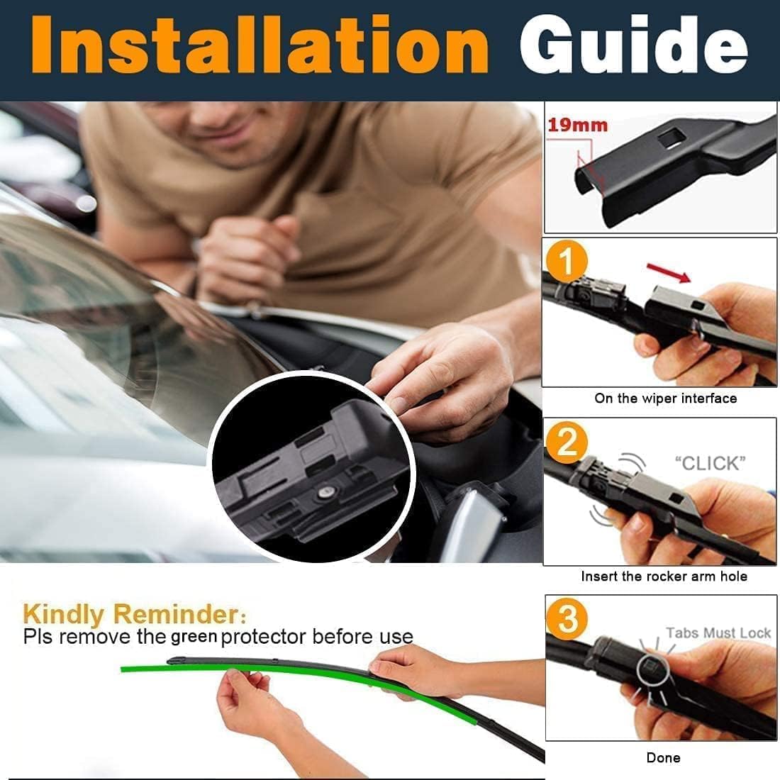 - ăWHAT YOU GETăComplete set of 3 wiper blade : 24"+20"+13" (Left and right and Rear),12-month worry-free warranty and friendly customer service.