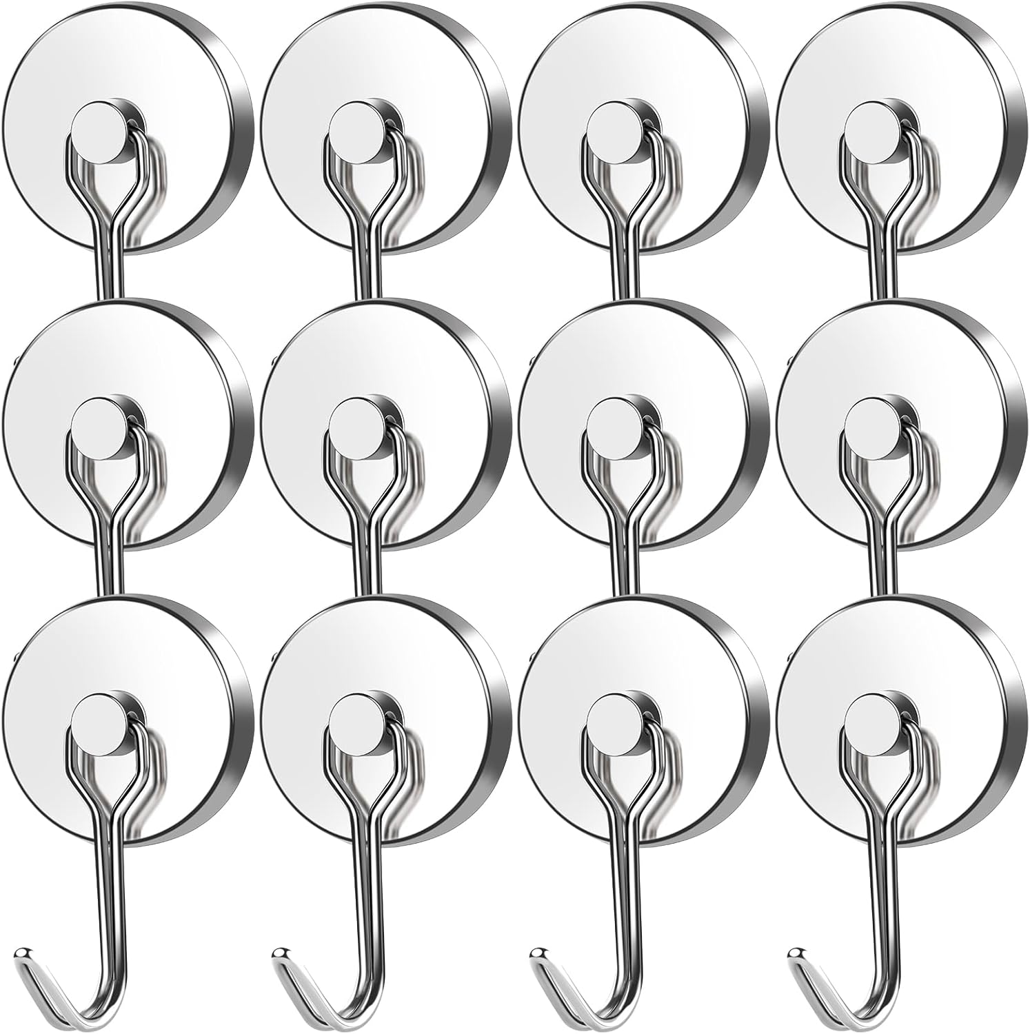 MIKEDE Strong Magnetic Hooks, 110LB Swivel Magnetic Hooks Cruise, Neodymium Magnet Hooks Heavy Duty for Hanging, Grill, Cruise Cabins, Refrigerator, Grill, Kitchen, Locker - Pack of 12