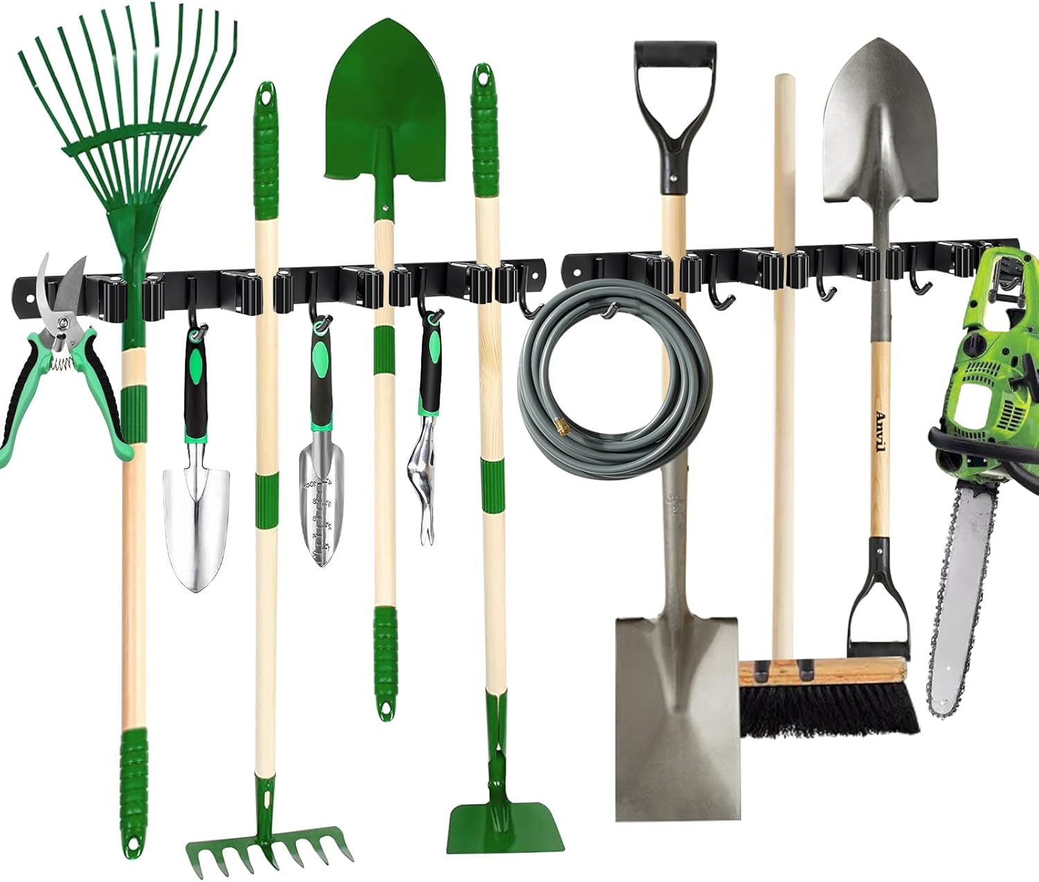 - 【Large Capacity & Saving Space】This home organizer with 4 Racks and 5 Hooks storage your brooms, mops, rakes, garden tools, laundry room storage and more, efficiently uses the wall space.