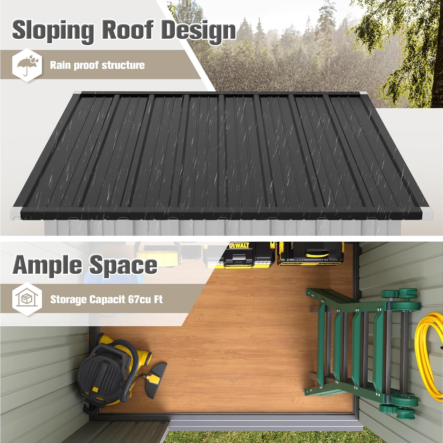 - Multifunctional storage shed: 5’*3’ Storage shed has 67cu.ft storage capacity can be used for multiple purposes, suitable for backyard, garden, courtyard, and other scenarios. It can be used to store tools, bicycles, garbage, and as a pet room.