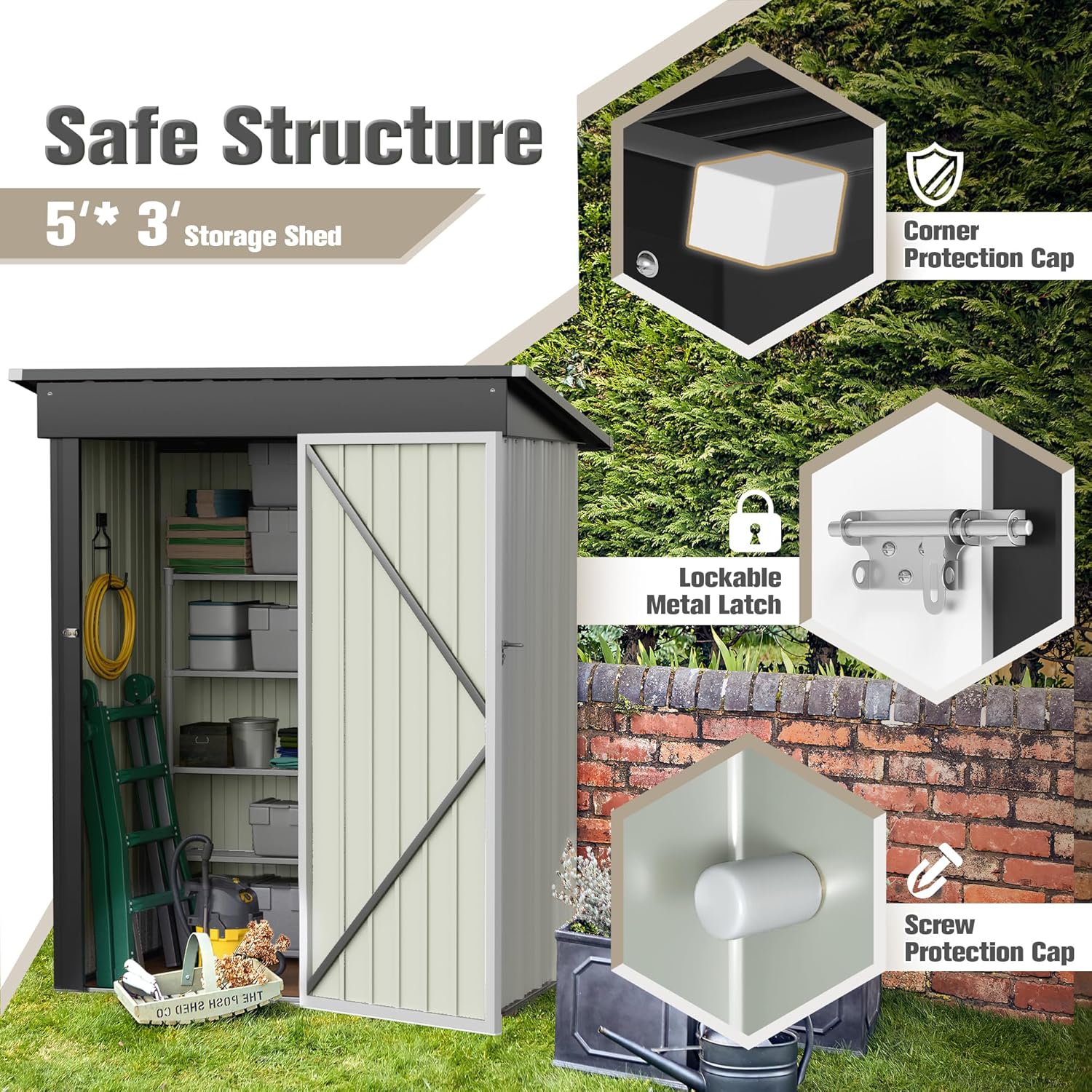 JUMMICO Metal Outdoor Storage Shed 5 x 3 FT Metal Shed with Lockable Door,Waterproof Garden Tool Shed Storage House for Backyard Patio Lawn,White