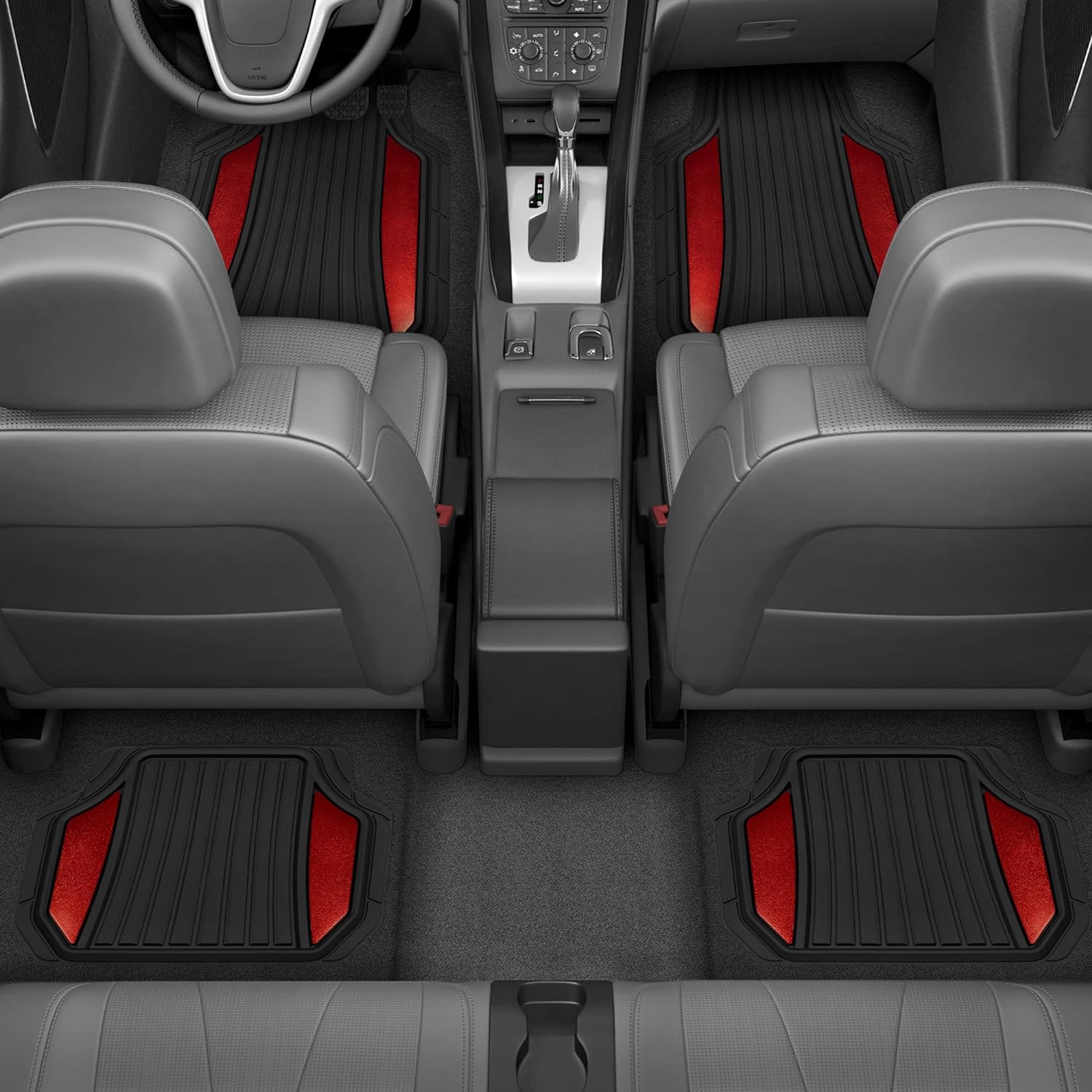 Motor Trend ChromeTech Car Floor Mats Full Set - Durable Rubber Floor Mats for Cars with Two Tone Accent, All Weather Interior Protection for Front and Rear with Non-Slip Backing, Red Chrome