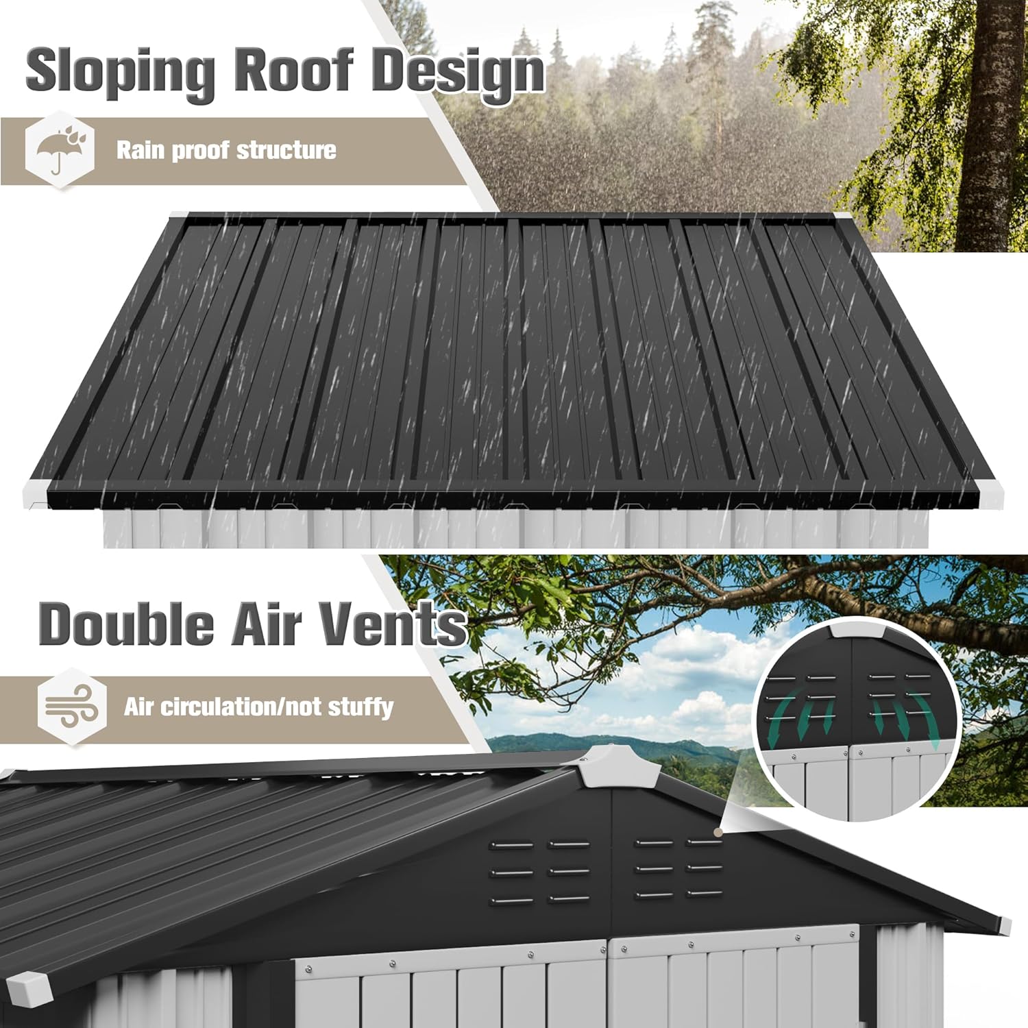 - The material is sturdy and durable: The tool shed is made of a thickened galvanized steel plate, making the product beautiful and durable, rust-proof and UV-proof, with a protective film on the surface to prevent the wall from being scratched.