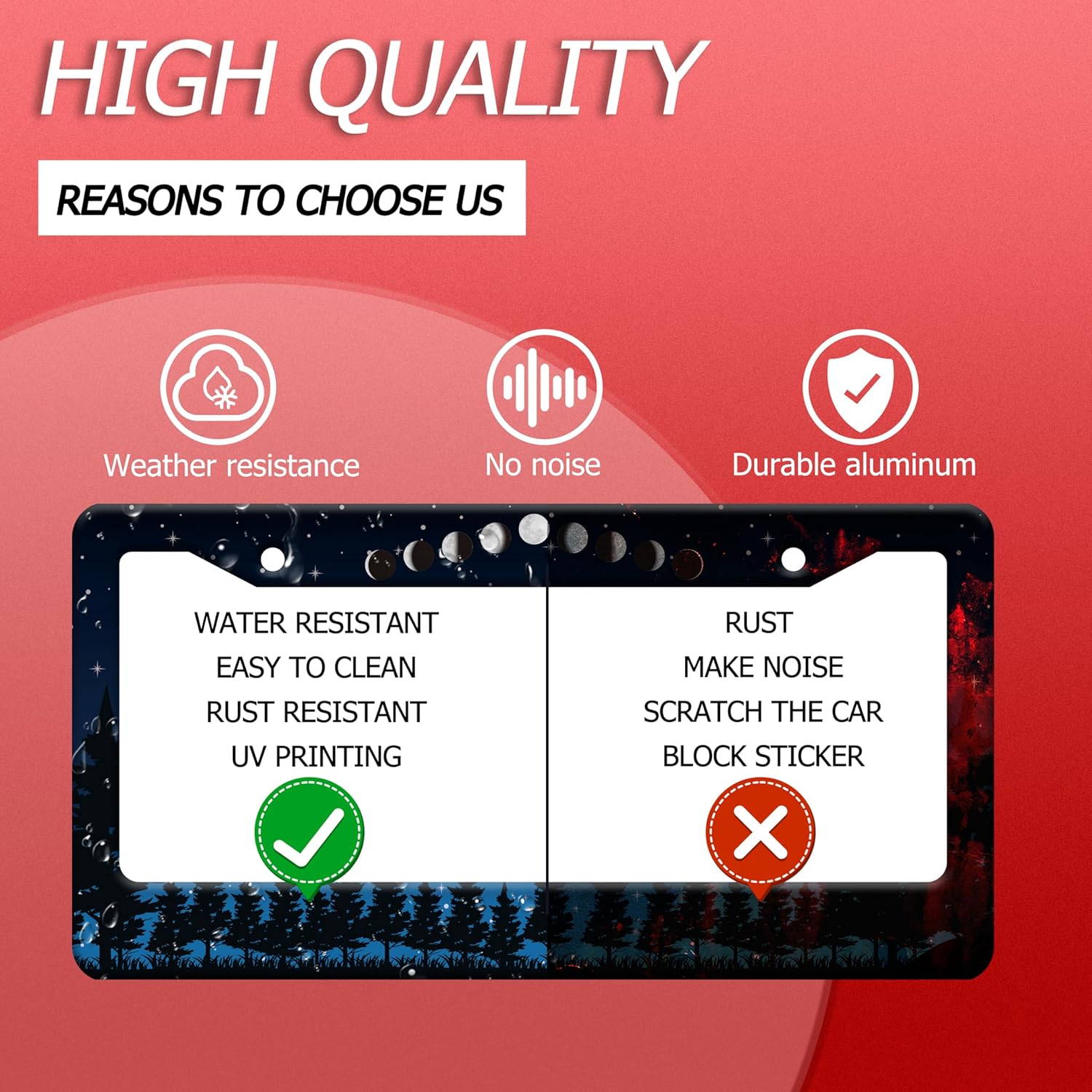 Moon Phase Forest Night License Plate Frame Moon License Plate Frames Stainless Steel Accessories Cars Decor with 2 Holes and Screws Fits Standard US CA Vehicles Size 12.2 x 6 Inches