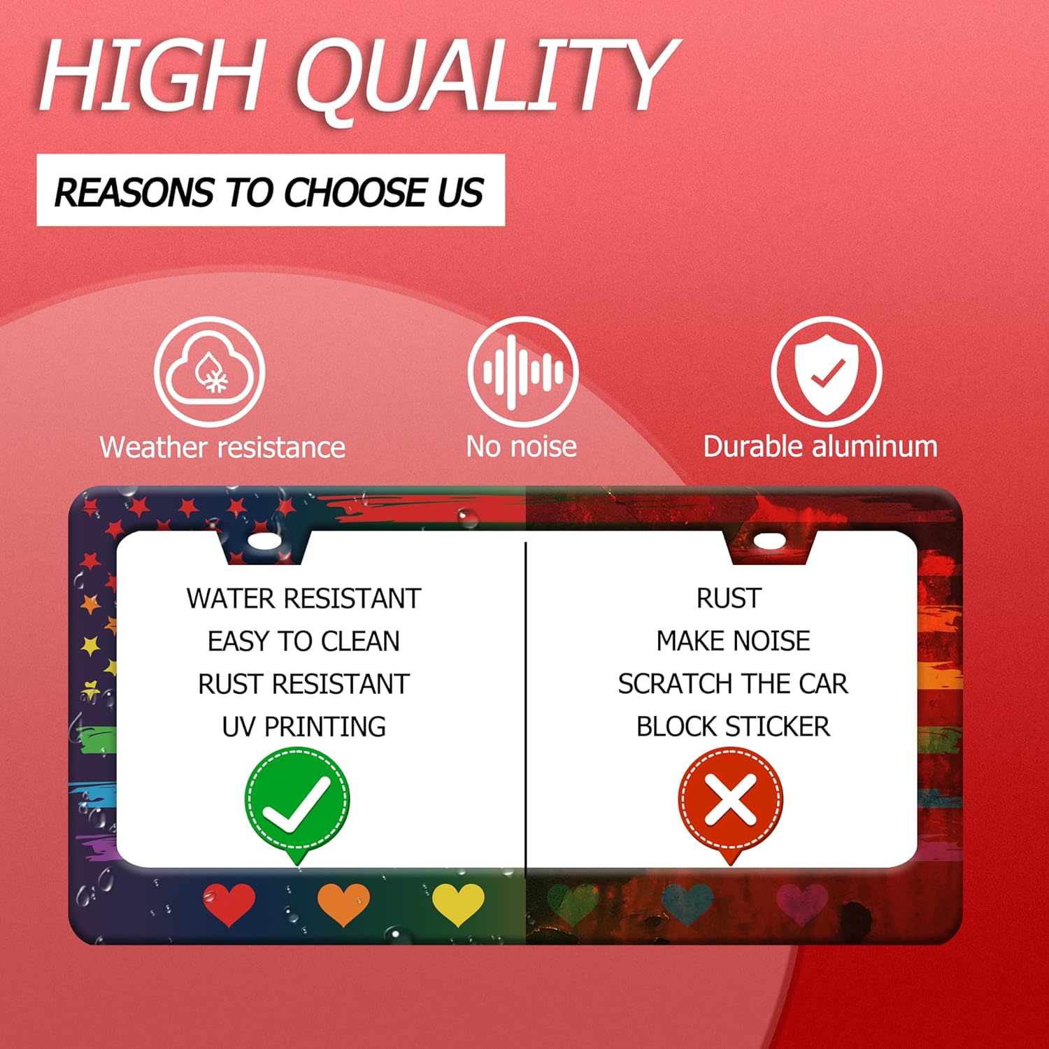 Rainbow Heart License Plate Frame Gay Pride LGBT License Plate Frames Stainless Steel Accessories Cars Decor with 2 Holes and Screws Fits Standard US CA Vehicles Size 12.2 x 6 Inches