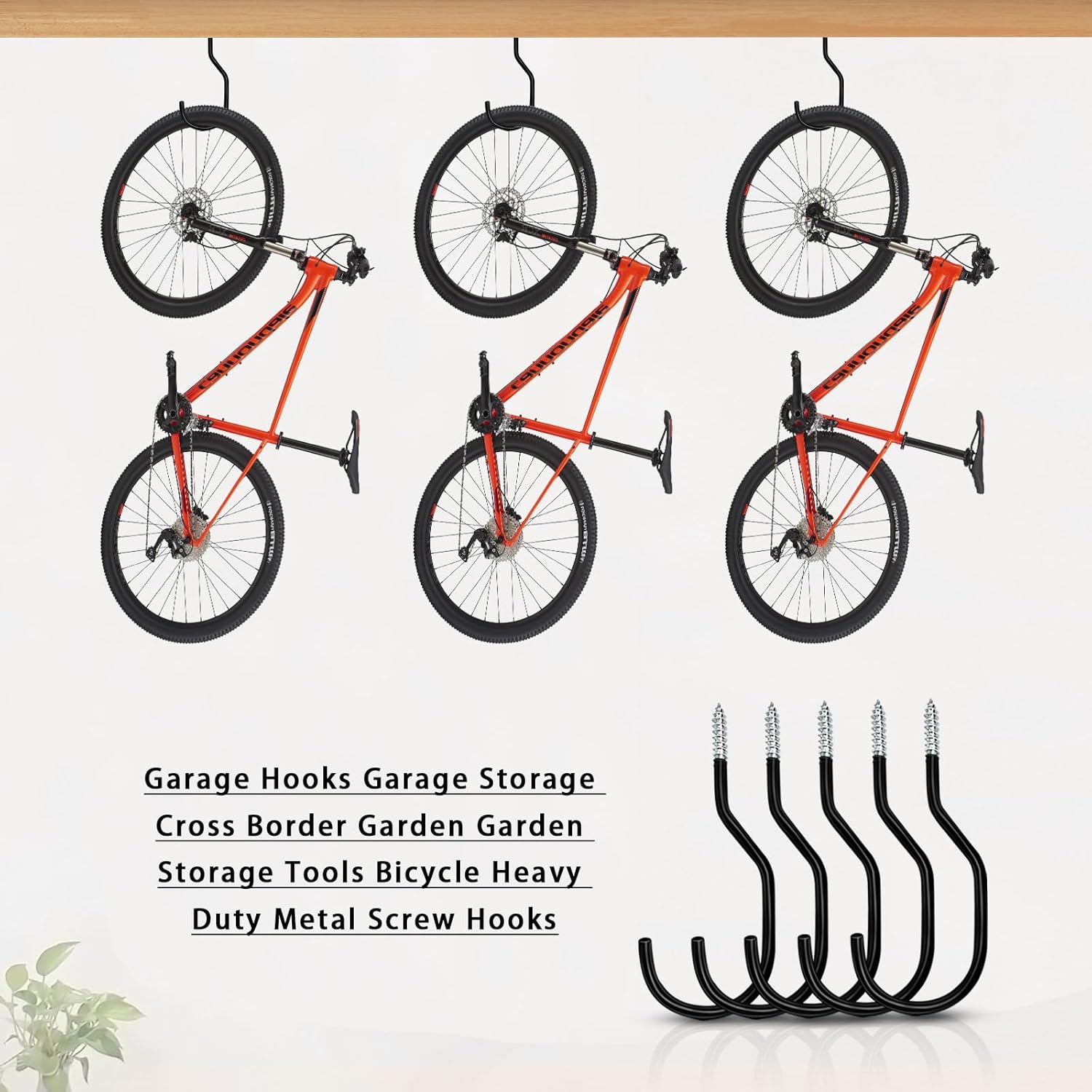 - 【Wide Application】These hooks can be used in different scenarios, suitable for garages, homes, warehouses, gardens, basements, tool rooms, street store displays, indoor or outdoor, etc., suitable for hanging various types of bicycles, mountain bikes, road Bikes, kids bikes, exercise bikes and more.
