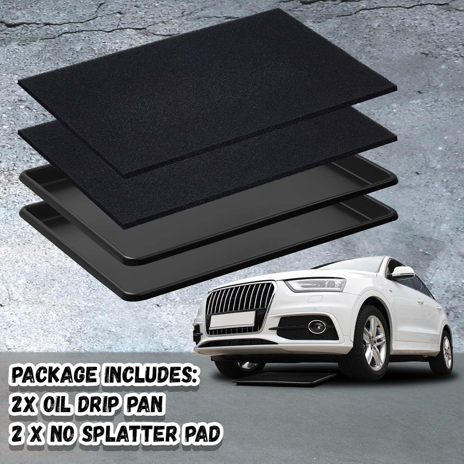 Uiifan 2 Sets 27'' x 20''x 1.4'' Oil Drain Drip Pan for Car with Square No Splatter Pad Oil Drip Tray with Mat for Under Car Transmission Garage Automotive Driveway to Keep Floor Clean, Black