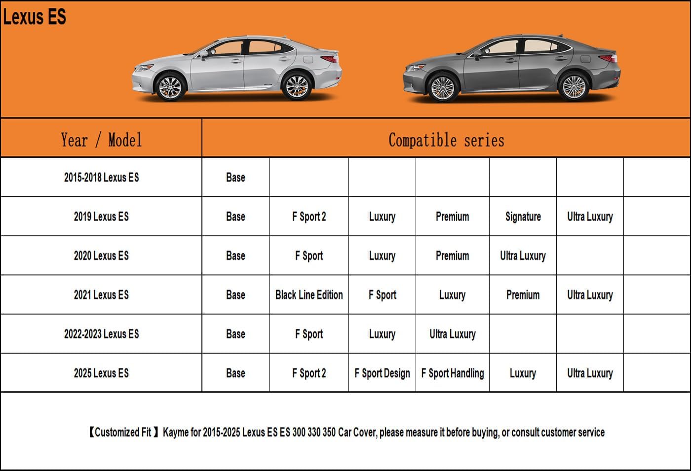 - ăSuitable forăâ Custom fit for Lexus Lexus ES ES300 ES330 ES350 ES300h (2015-2025ďź. Come with a large enough portable bag to store your cover when you do not use