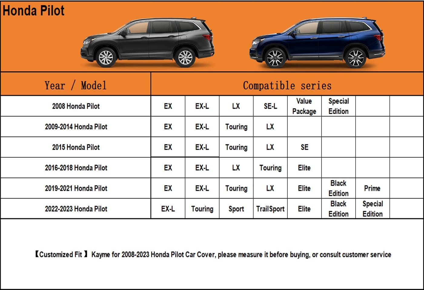 - ăSuitable forăâ Custom fit for Honda Pilot ďź2008-2025) . Come with a large enough portable bag to store your cover when you do not use