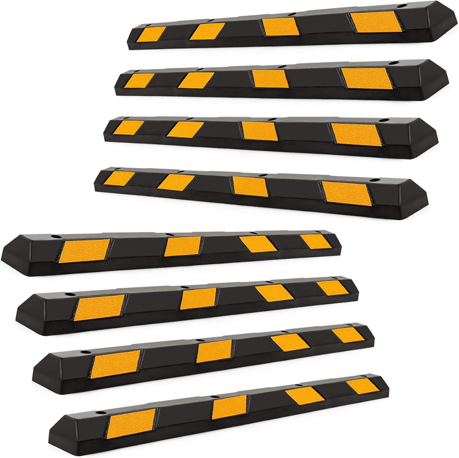 IRONMAX Parking Stopper for Garage, 72" Long Rubber Curb with Yellow Reflective Stripes, Heavy Duty Parking Block Garage Wheel Stop for Car, Truck, RV, Trailer (8 Pack)