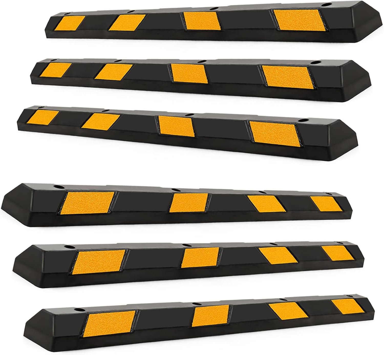 - All-Weather Rubber Parking Curb: Engineered from supple rubber, this garage parking aid supports up to 8800 lbs, providing durable collision prevention for cars, trucks, RVs, and trailers. Its robust design outperforms concrete parking blocks, withstanding elements like rain, snow, and oil.