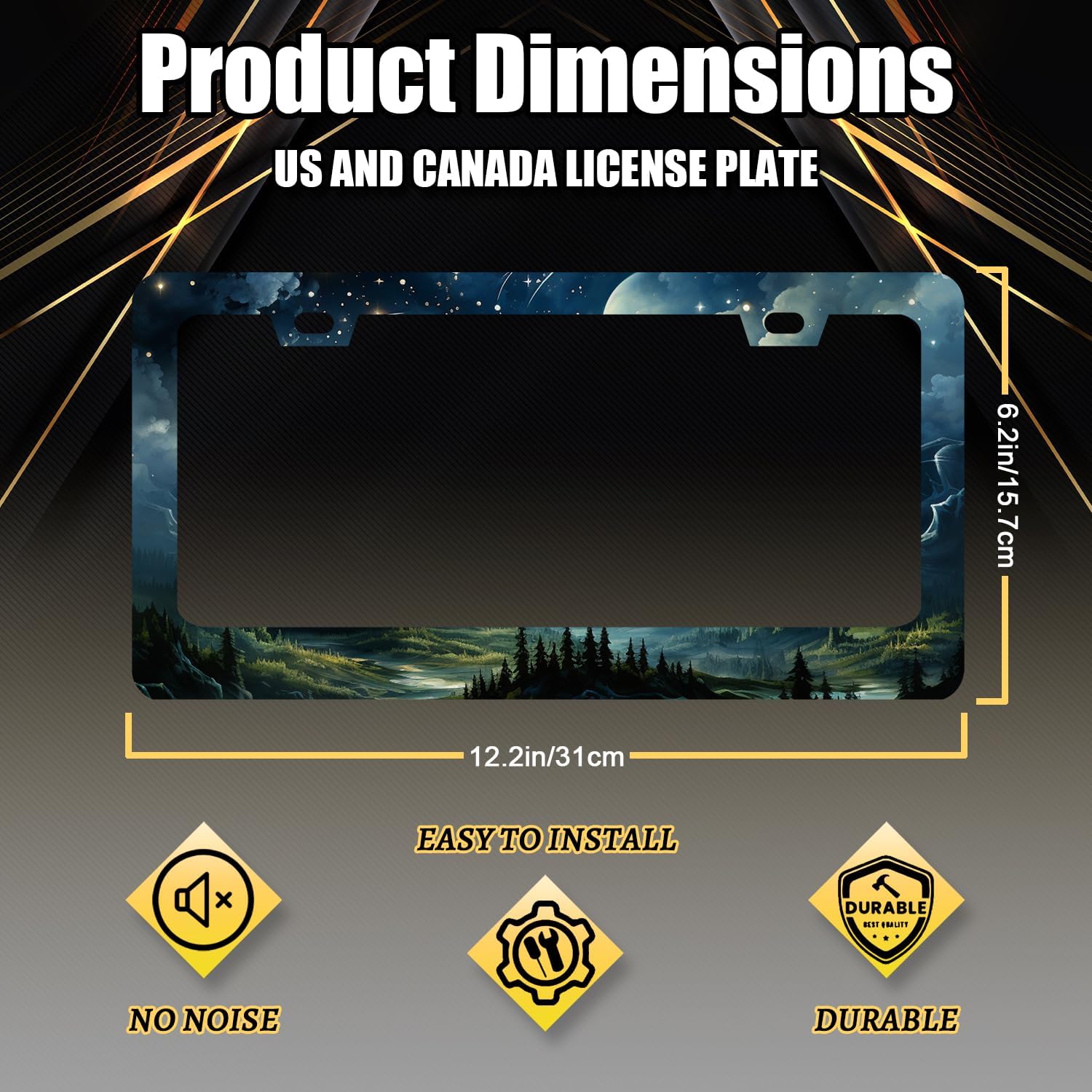 Watercolor Sky Clouds License Plate Frame Beautiful Stars Forest License Plate Holder Stainless Steel Colorful Car Accessory Funny License Plate Decoration Size 12.2"x6.2" with Screws