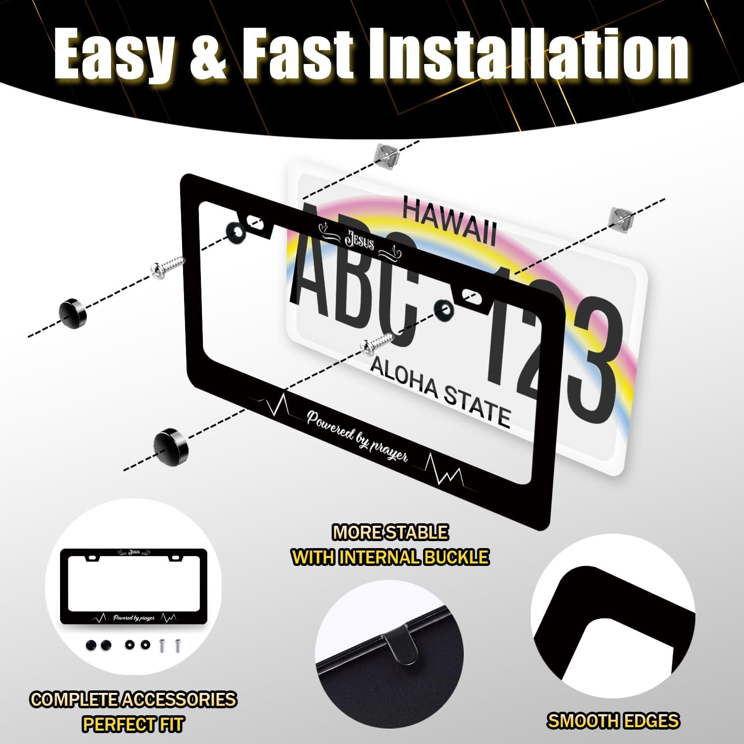 Jesus Cross License Plate Frame Funny Christian License Plate Holder Stainless Steel Religion Car Accessory Faith License Plate Decoration for Men Women Size 12.2" x 6.2" with Screws