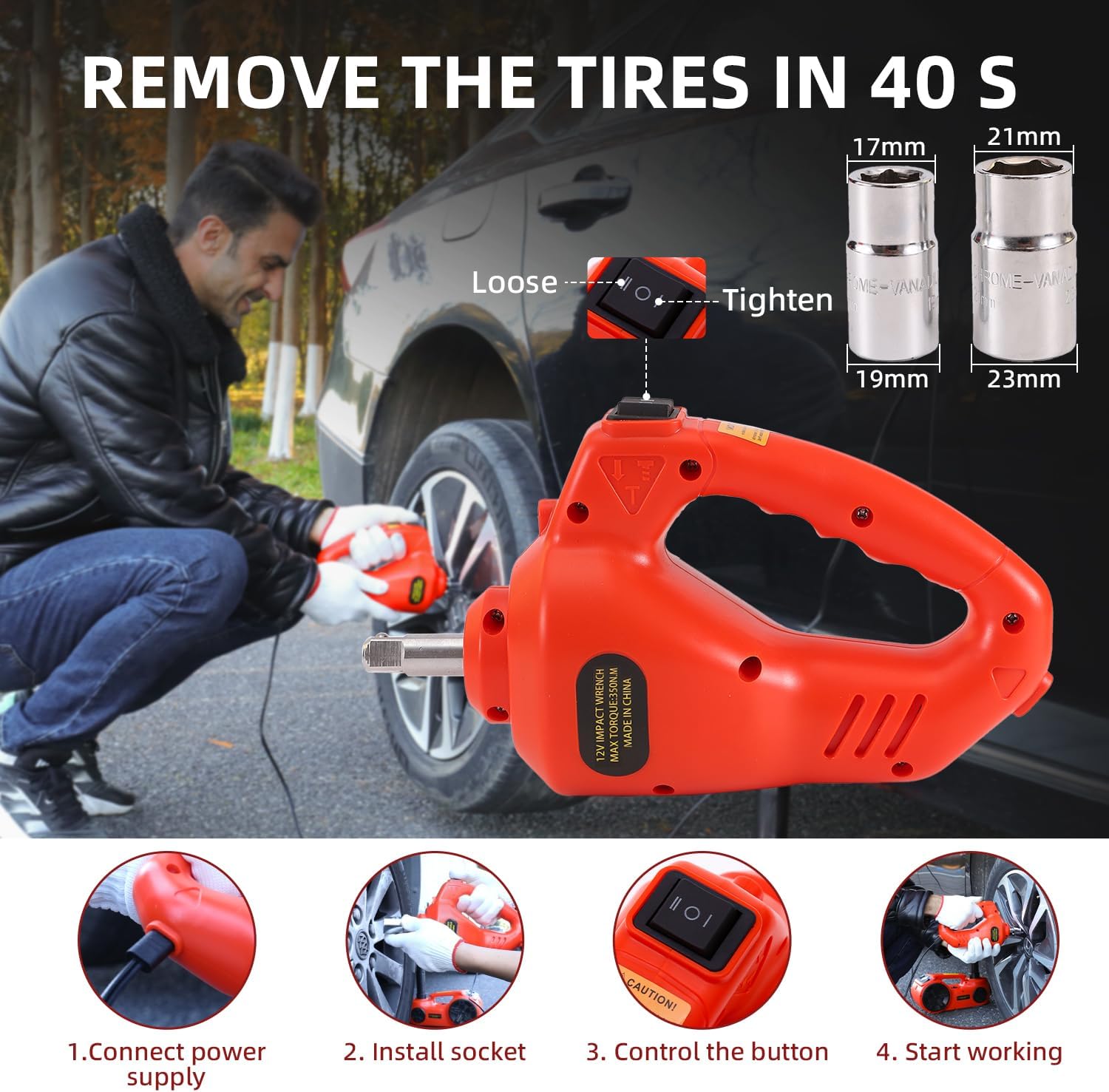 - Comes in red & black color options; compact electric car jack kit includes wrench for SUV, power cable, safety hammer, and user manual; fits neatly in your trunk for travel or home garage