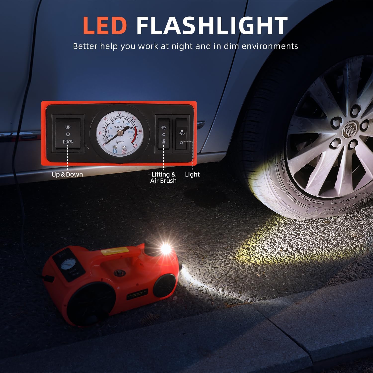 - Rich and diverse functions include electric impact wrench and tire inflator pump portable hydraulic, making this car jack kit 5 ton 12v floor jack with impact wrench ideal for roadside emergencies
