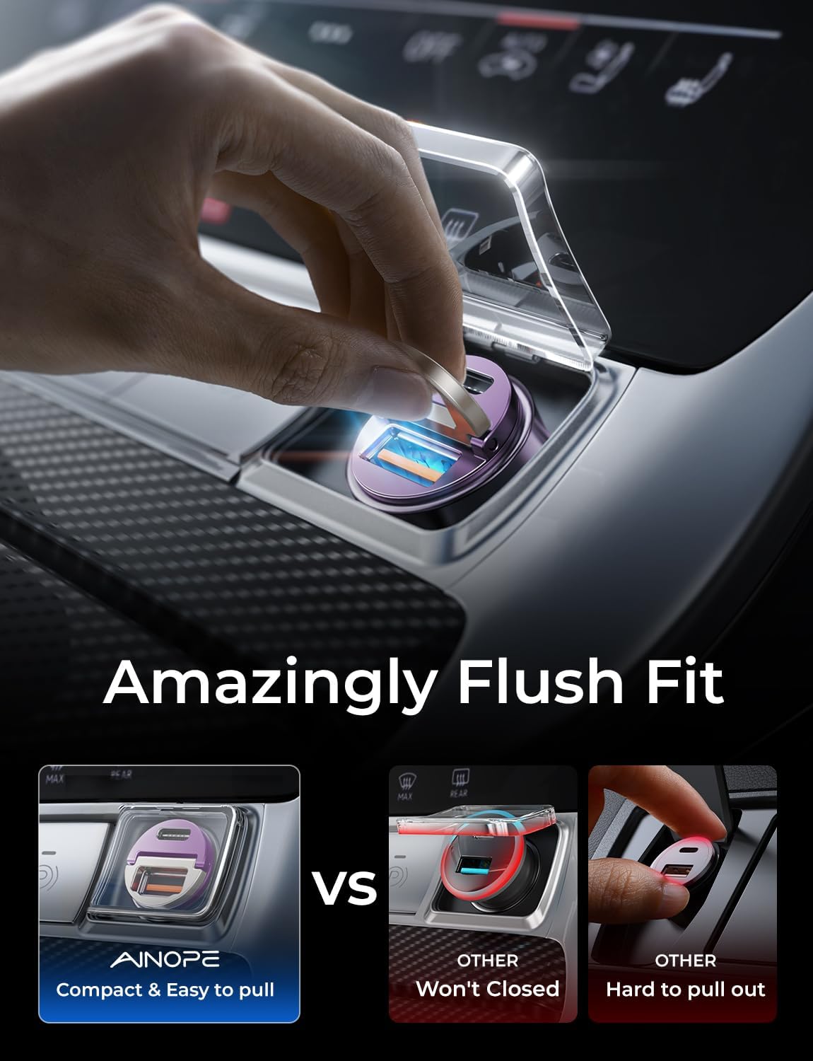 AINOPE 90W Super Fast Car Charger, Invisible USB C 45W Car Charger Fast Charging Type C, [Mini&Metal] Cigarette Lighter USB Adapter Fits Samsung Galaxy S25 Ultra S24 iPhone 16 15 Pro Max Piexl, Purple