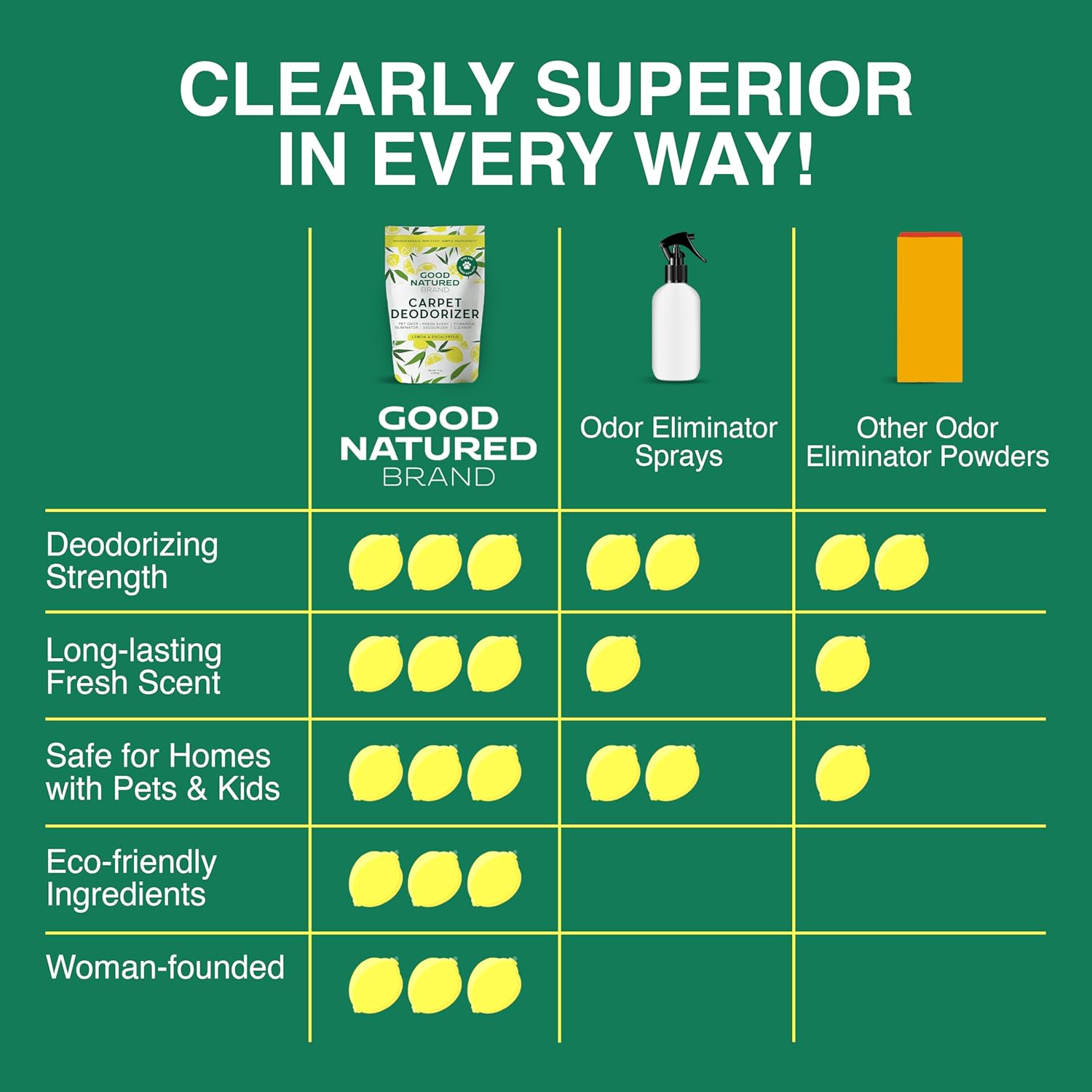 Good Natured Brand | Carpet Deodorizer & Freshener Powder | 47 oz Pet Odor Eliminator for Strong Odor & Pet Urine | Fresh Natural Lemon & Eucalyptus Scent | Safe for Homes with Pets