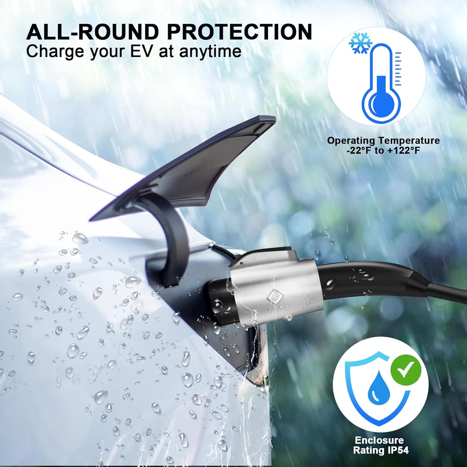 - ăFast Chargingă:This adapter to enable your EV to achieve the highest charging power between 110V-250V, with a capacity of up to 80 amps (depending on the charging station and your carâs capacity). Charge your vehicle within a few hours.
