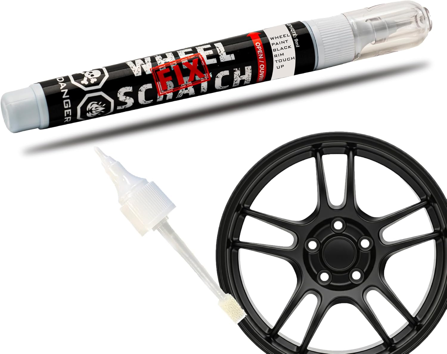 Matte Black Rim Touch Up Paint, Car Wheel Scratch Repair, Wheel Touch Up Paint Pen, curb rash repair, curb rim repair, Rim Alloy Matte Black Wheel Paint (Matte Black Satin Pen Only)