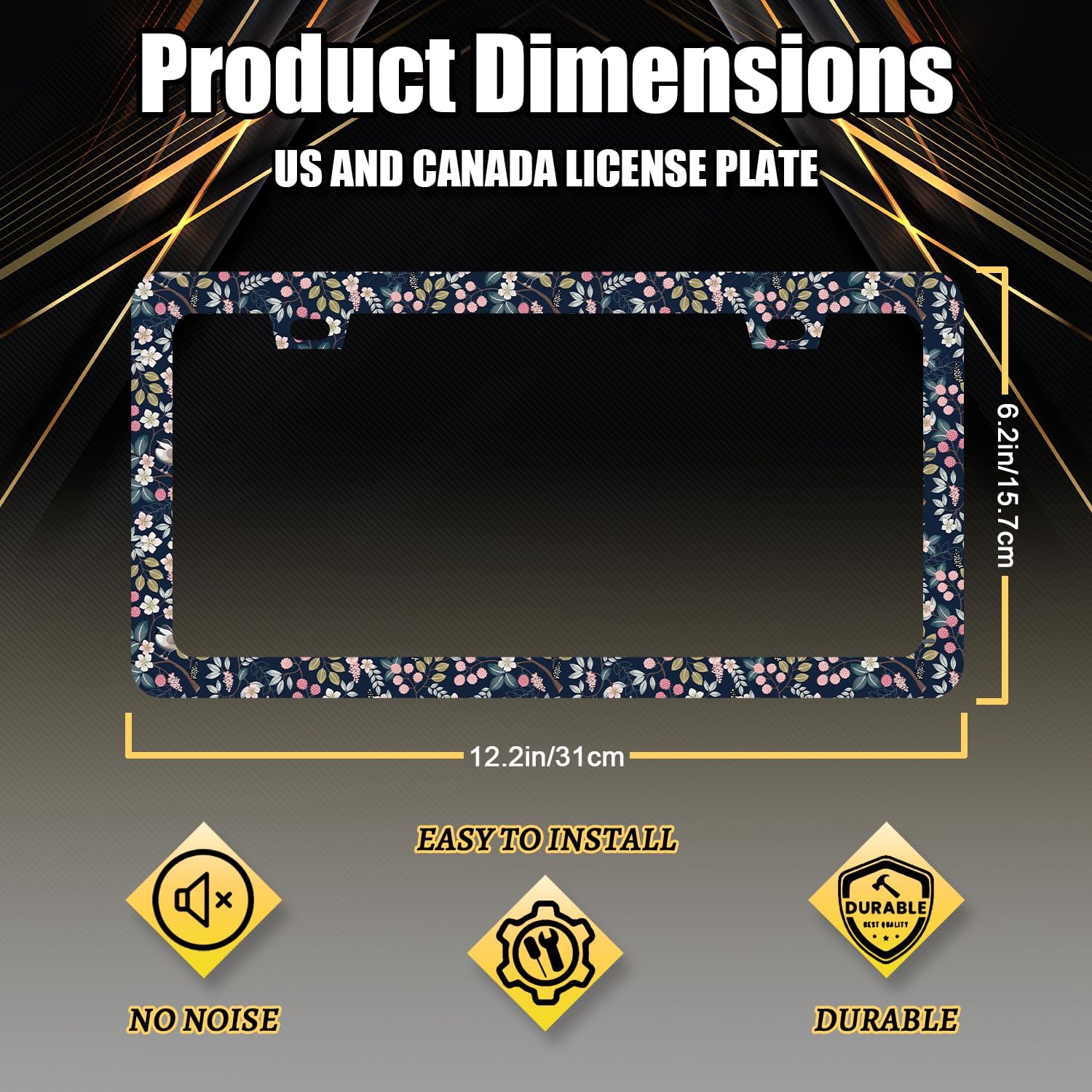 Blue Floral Flowers License Plate Frame Beautiful Flower License Plate Holder for Personalise Women Car Decorative Stainless Steel Colorful License Plate Auto Parts with Screws 12.2" x 6.2"