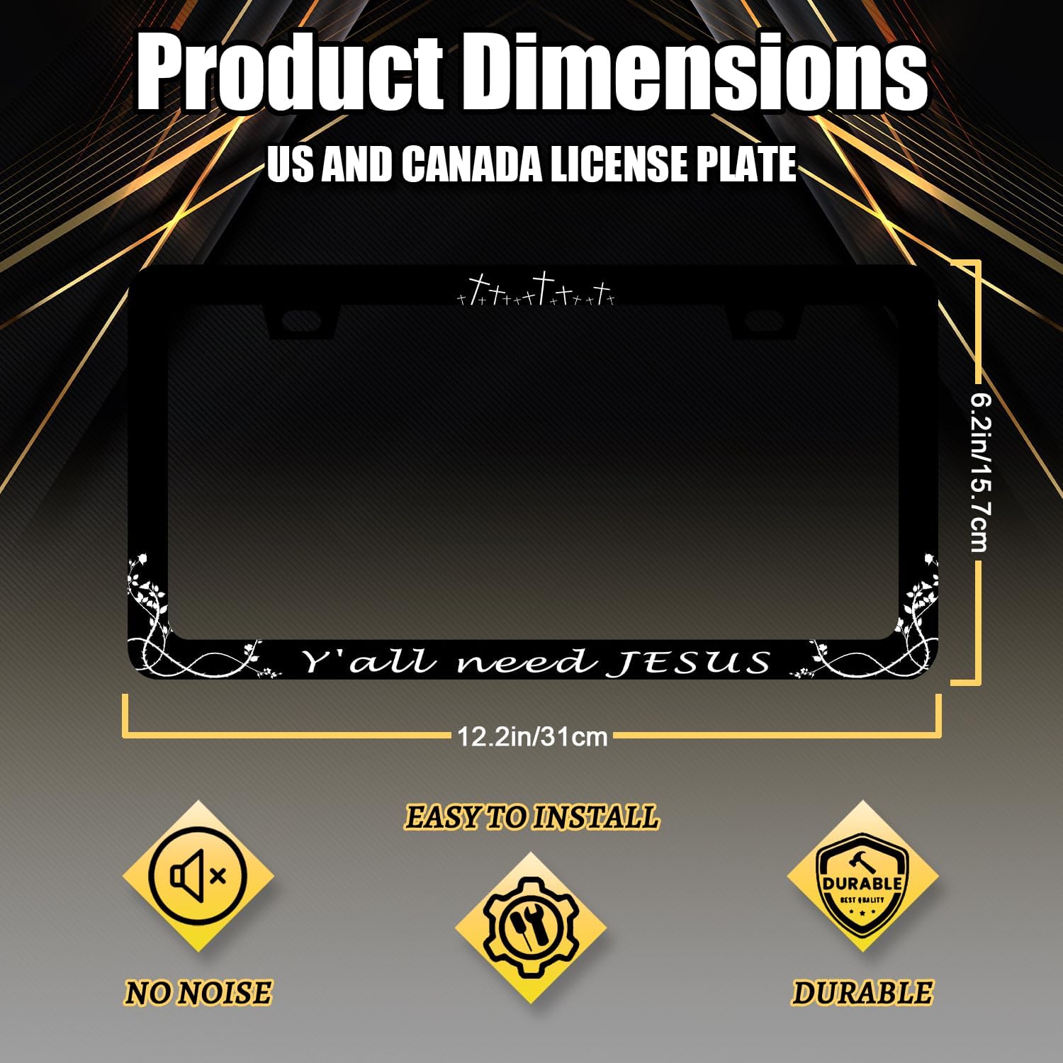 Y'all Need Jesus License Plate Frame Christian License Plate Frames Jesus Auto Accessory for Funny Text Car Decorative Stainless Steel License Plate Holder with Screws Men Women 12.2"x 6.2"