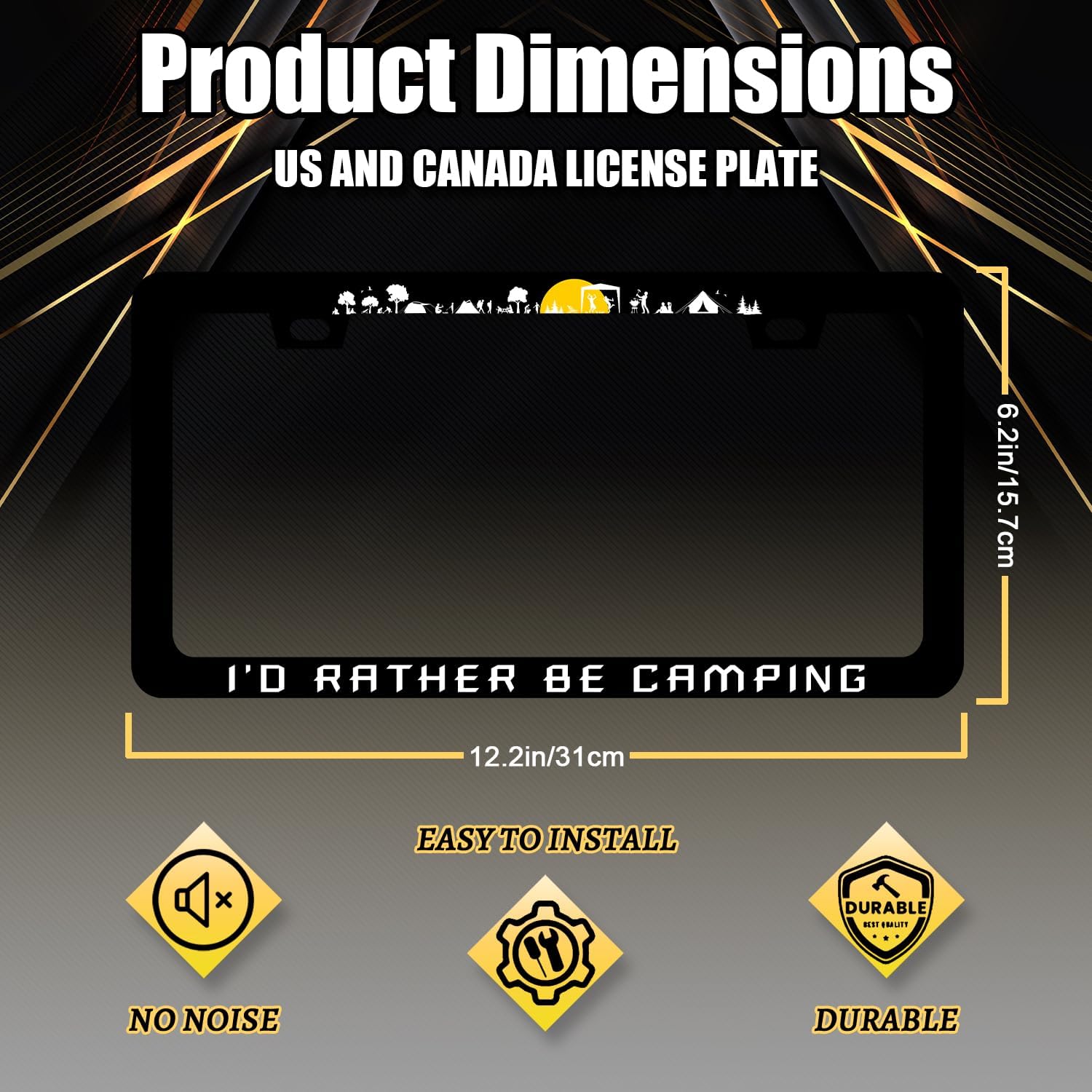I'd Rather be Camping License Plate Frame Mountain Camper License Plate Holder for Personalized Car Decorative Stainless Steel Funny License Plate Camp Auto Part with Screw 12.2"x6.2"