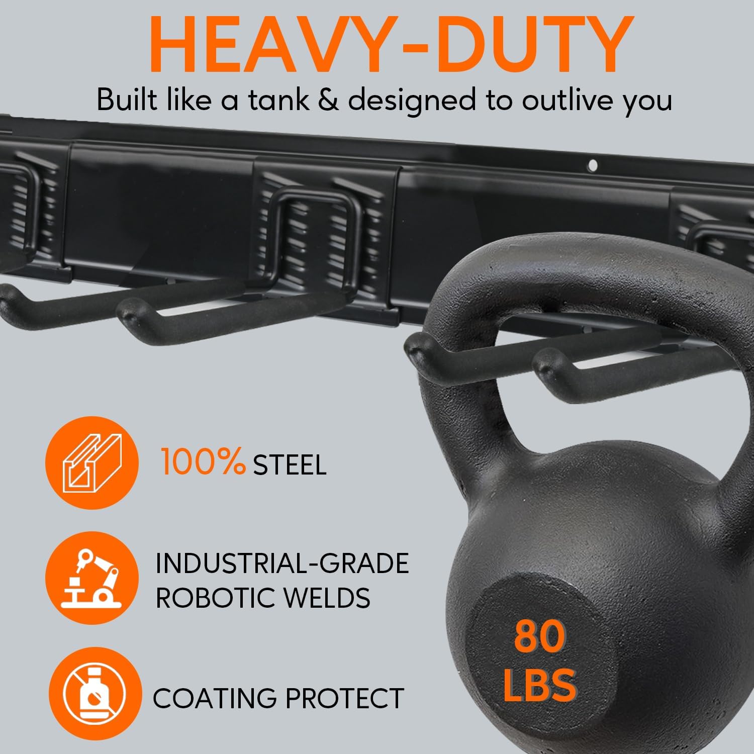- 【Flexible Positioning】The garage track wall system allows quick relocation of hooks across the 48-inch rails, letting you adjust storage easily when organizing seasonal gear, sports equipment, or household tools.