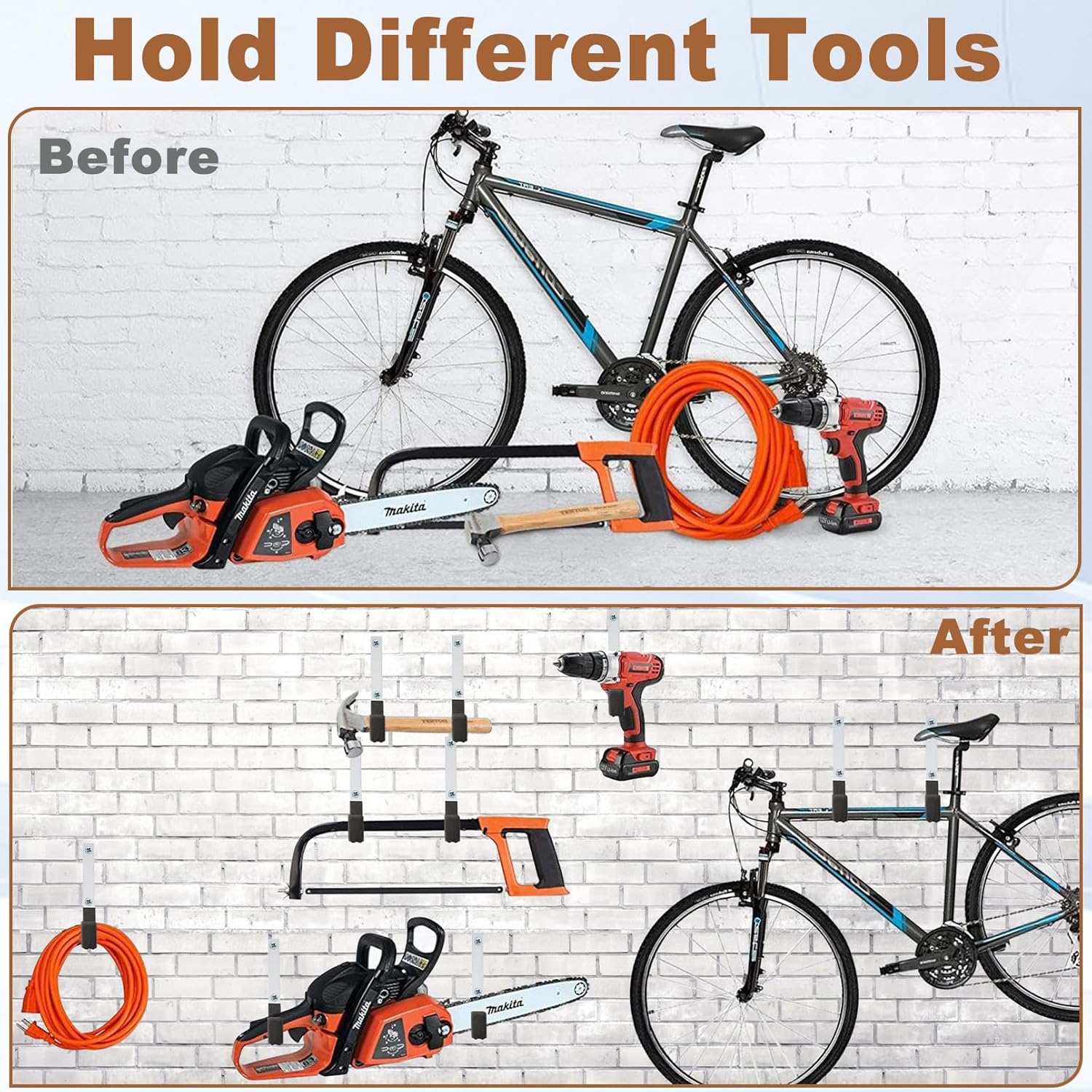 - Easy to Store Bulky Items: These utility hook is great for saving space and can be used in combination. Especially great for organization snowboard, kayak, skateboard, carts, ladders, surfboard, lumber, folded chairs, ski, wrench, bicycles, shovel, paddles, wire, sports equipment and other bulky items.