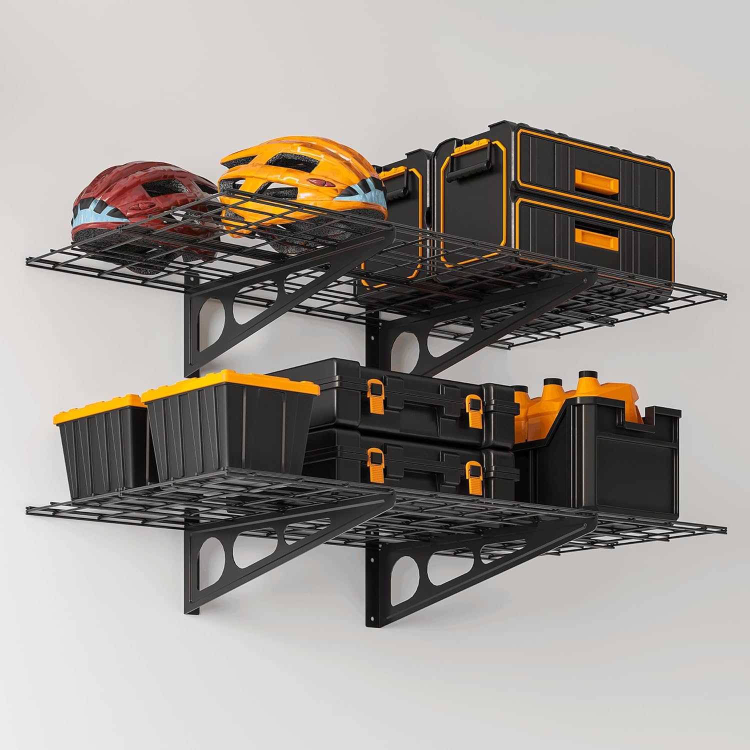 - Multi-functional Garage Wall Shelving: Made of durable, heavy-duty cold-rolled steel, this 2x4 ft garage shelf offers plenty of storage space for your garage, small pantry, or kitchen.