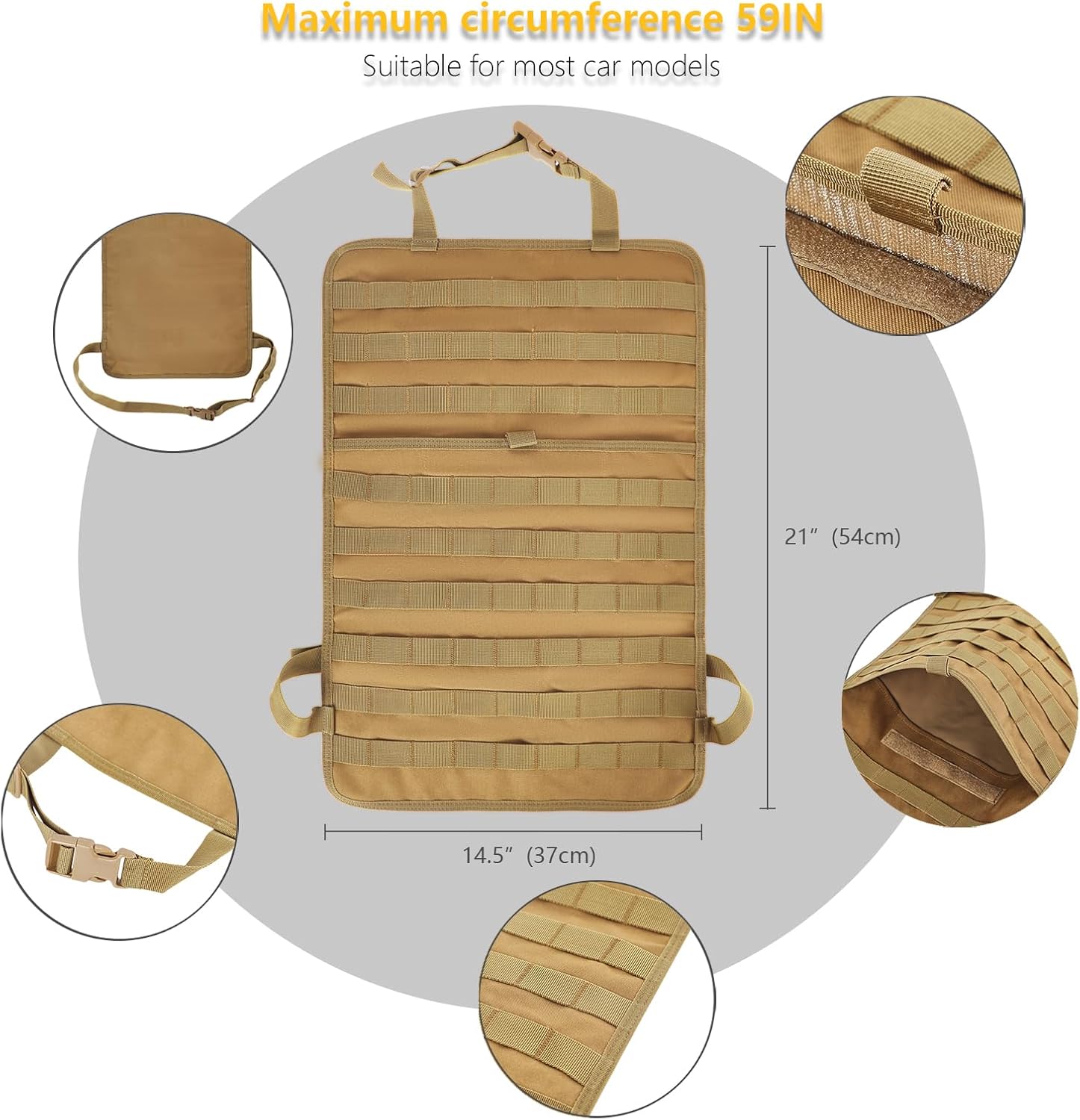 - 🚗 Multifunctional Storage - Design with 5 Molle bags on the back to help you store tactical gear & personal items and save space. Difference sizes of Molle bags help you classify your items so easily.you can set the Tactical Seat ​Back Organizer according to your own habits and need.