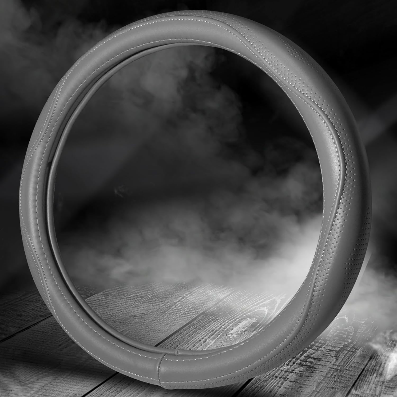 HAOKAY Top Grade Gray Genuine Leather Steering Wheel Cover Men Women, Luxury Steering Wheel Cover for Cars, SUVS and Trucks, Universal 14.5-15 inch
