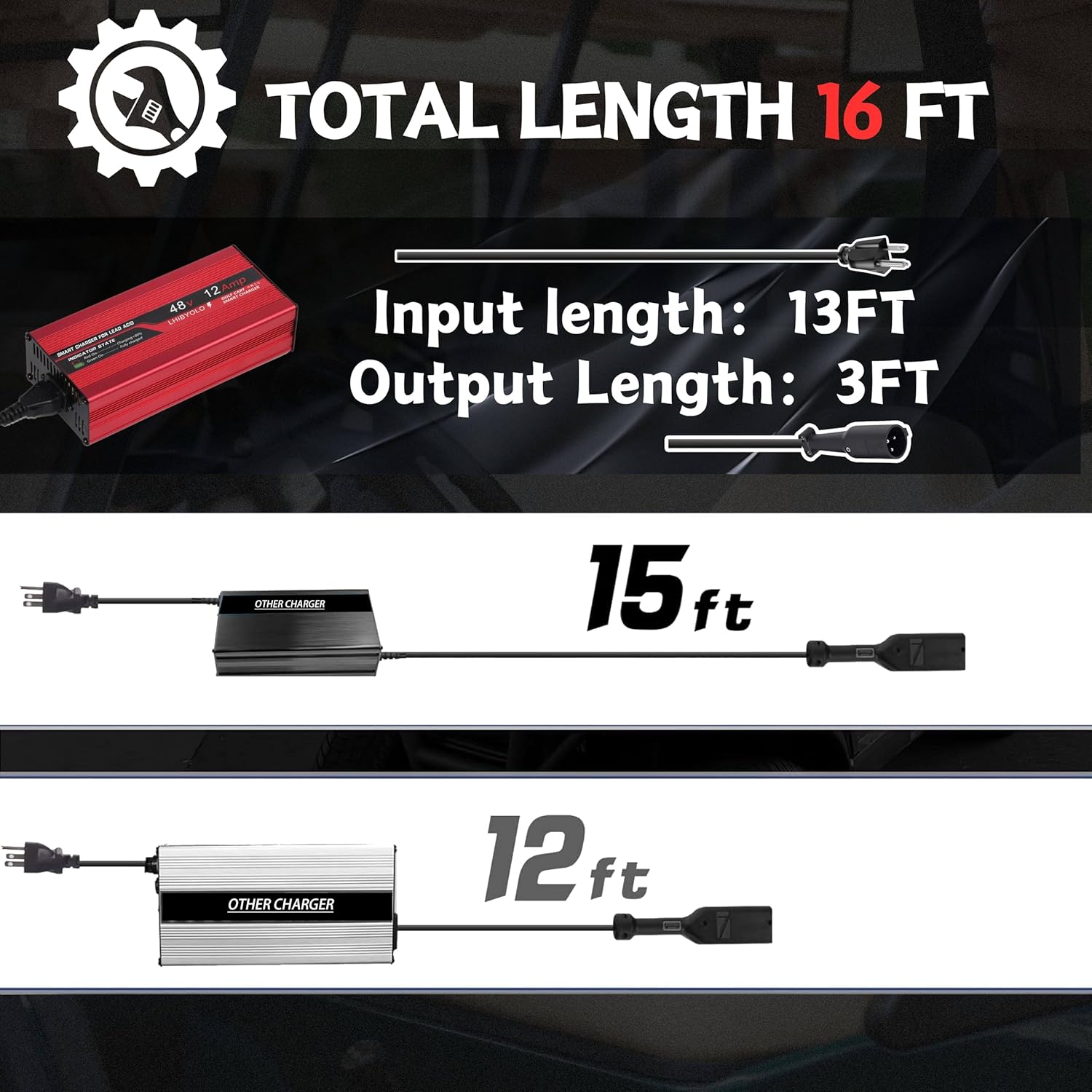 48V Golf Cart Battery Charger for 12A Club Car,with 3 Pin Round Plug, 12 Amp Golf Cart Battery Charger 48 Volt Club Car Charger,16FT