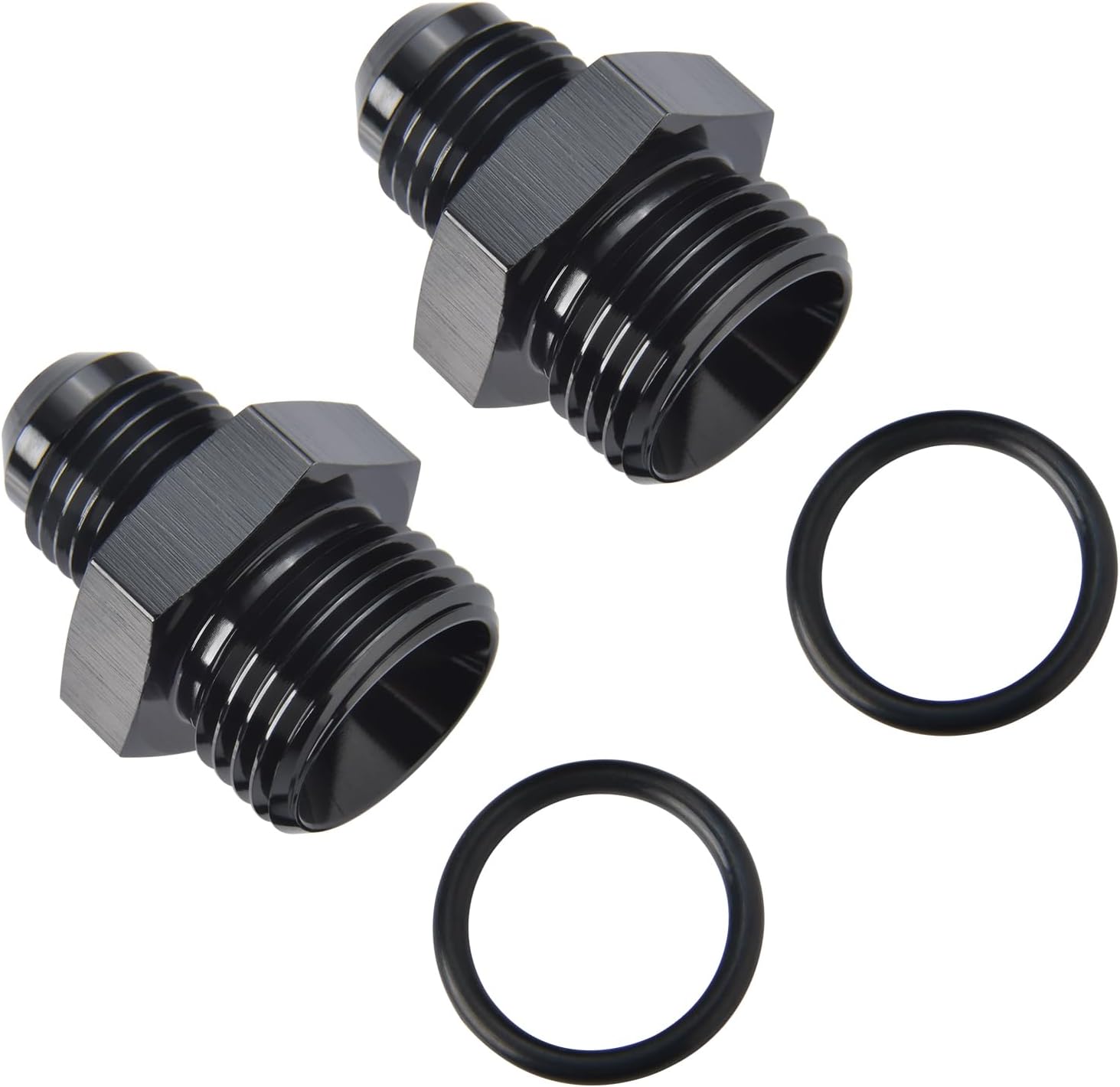 4AN Male Flare to 6AN ORB O-ring Boss Fuel Pump Rail Adapter Fitting Aluminum Black, Pack of 2