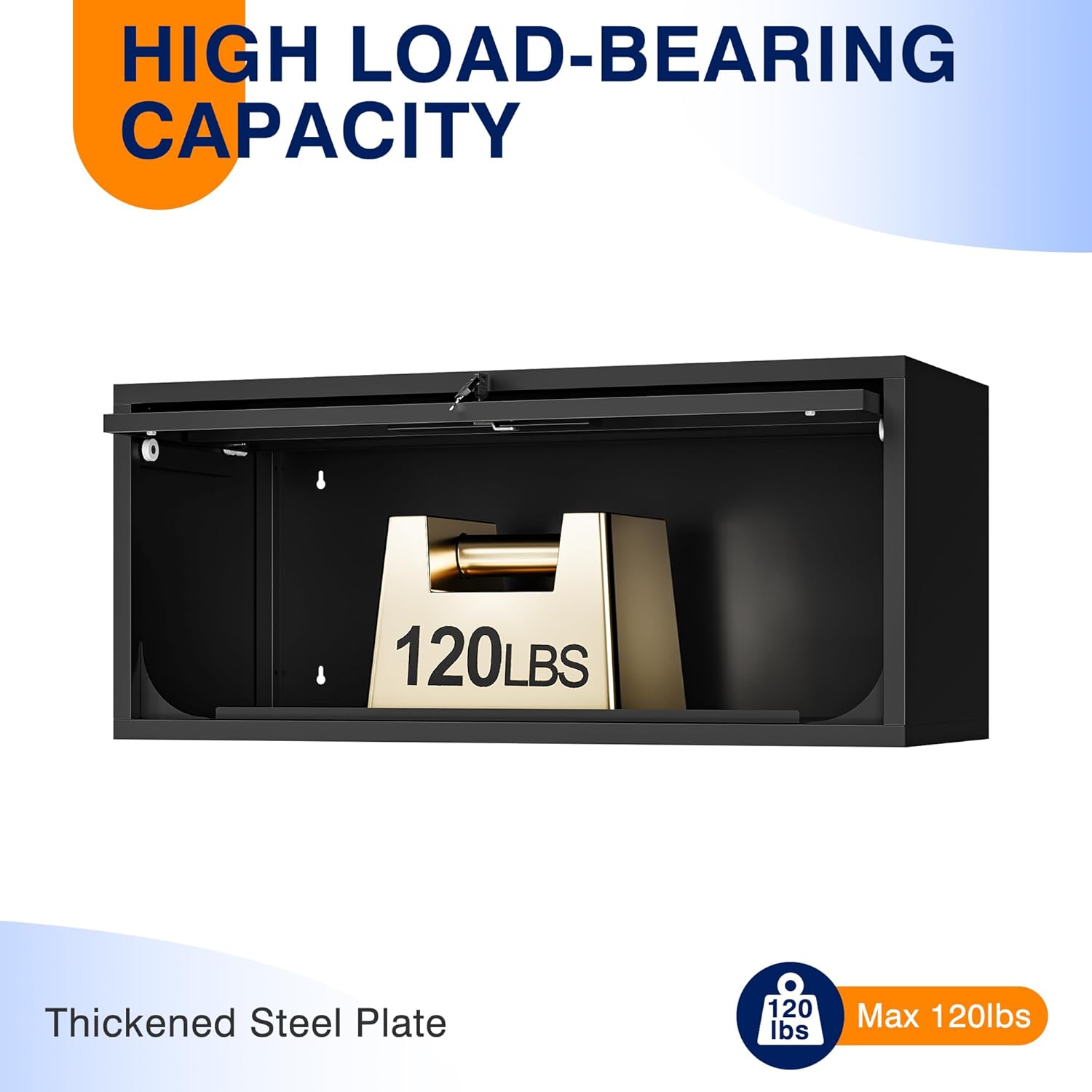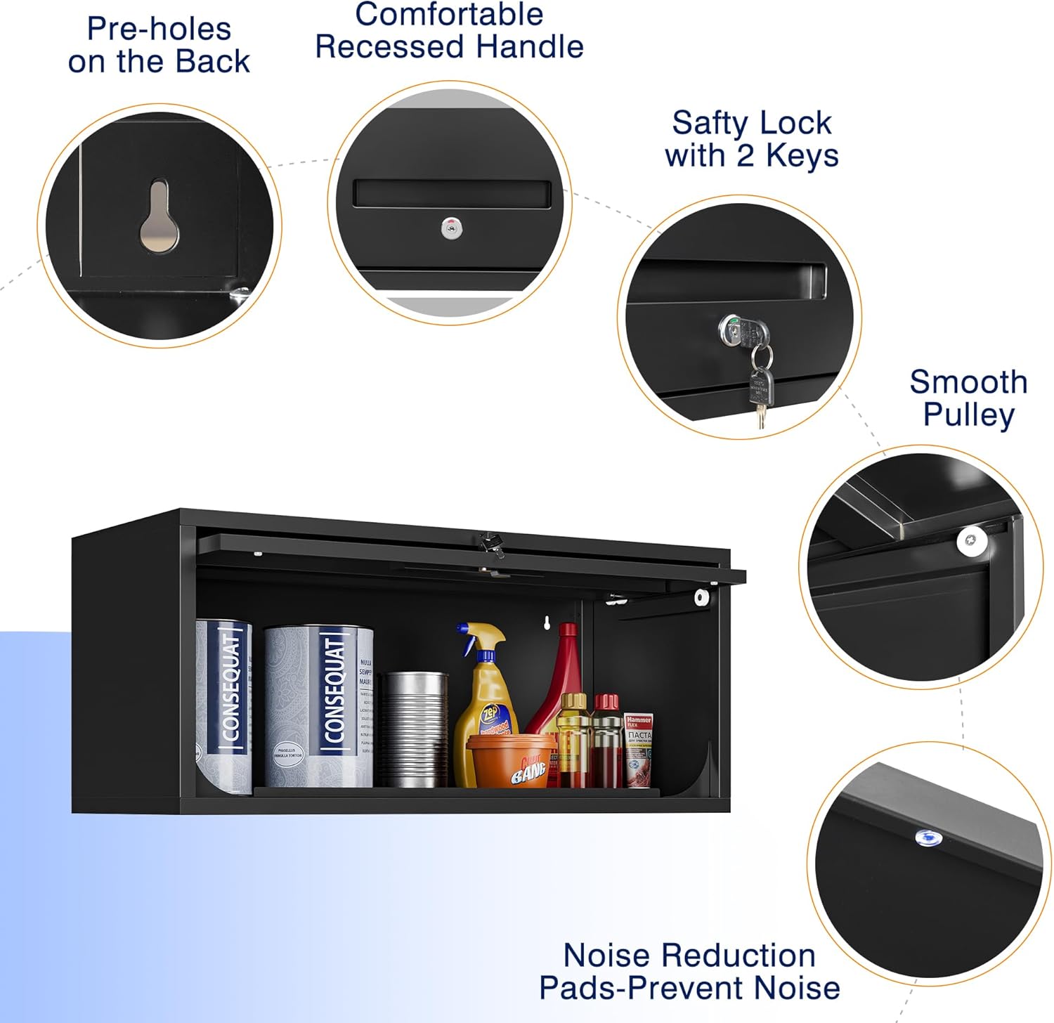 Yizosh Metal Garage Cabinet with Doors, Wall Mounted Storage Cabinet, Floating Tool Cabinet for Basement, Kitchen, Warehouse (Black, 13.7" H)