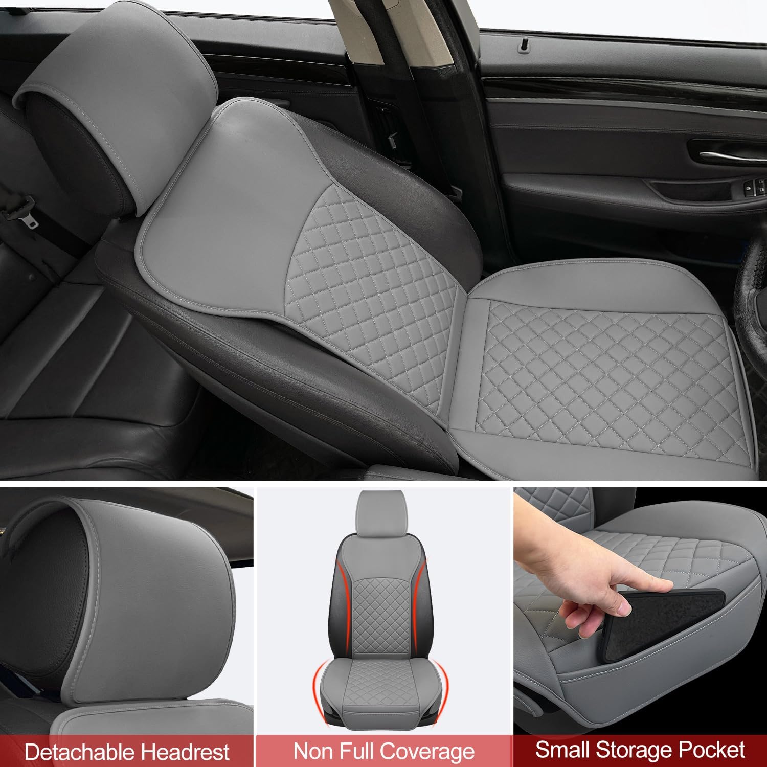 2 Pack Leather Front Seat Covers, Universal Sideless Car Seat Protectors, Waterproof Automotive Seat Cover for Most Cars Trucks SUV(Gray)