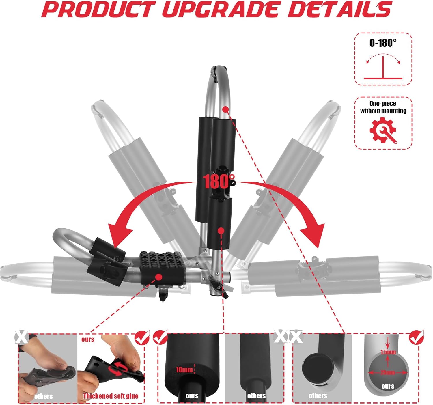 - ăUpgrade Thicken DesignăThe FORWODE frame is made of aero-grade aluminum using an anodized process. The thickened tube wall (1.5mm) and diameter (25mm) make the roof frame light and strong. The widened design can support two heavy kayaks up to 180lb. Rust-resistant and corrosion-resistant material features you can keep on the car roof for a long time without removing it.