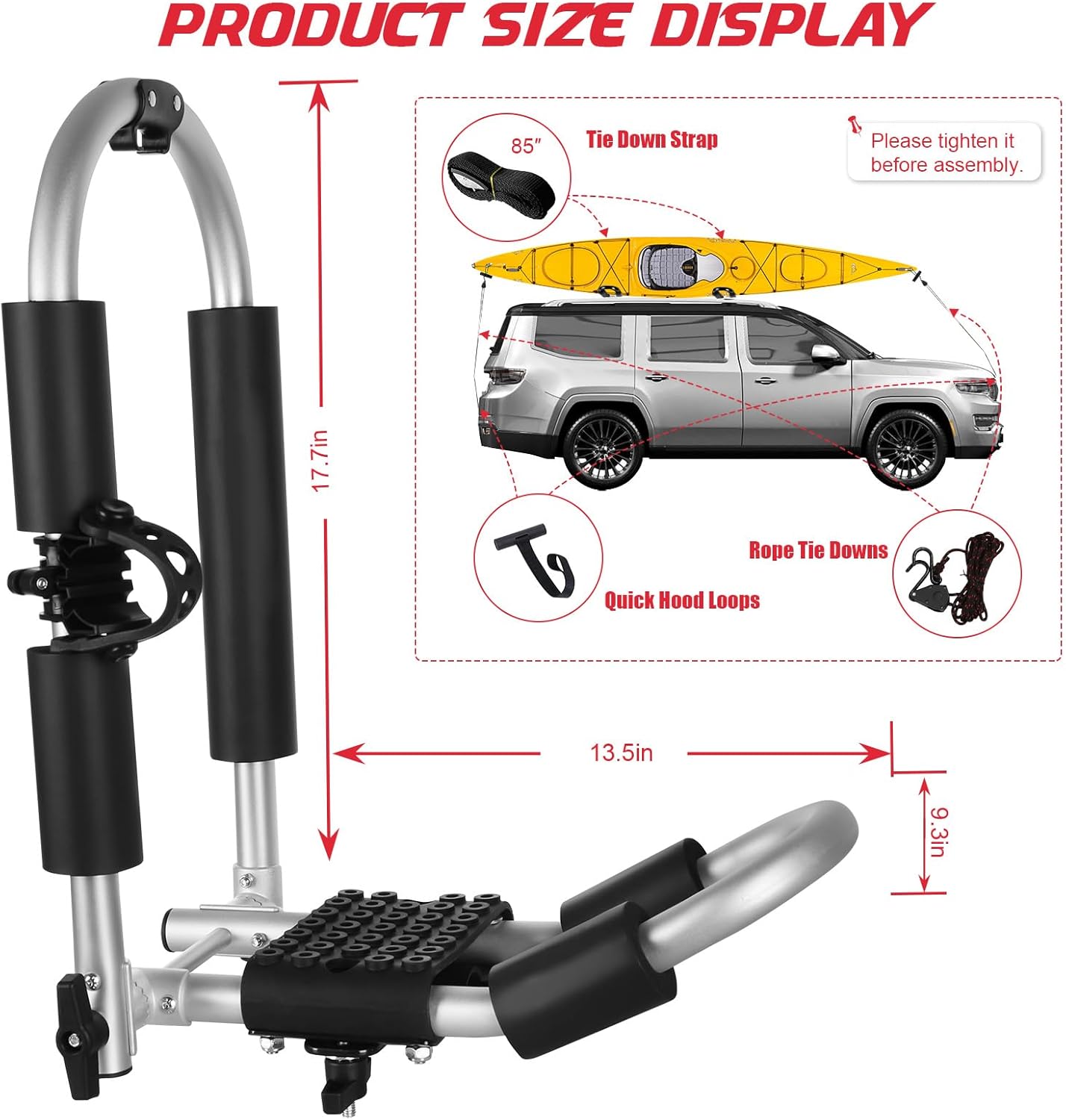 - ăProtection DesignăThe folding kayak carrier features exquisite craftsmanship with rubber pedals and foam protectors that provide maximum protection for your kayaks, canoes, and stand-up paddle boards. It also prevents scratches on your roof bar. The 1cm thickened foam also keeps your beloved kayak from getting hurt.