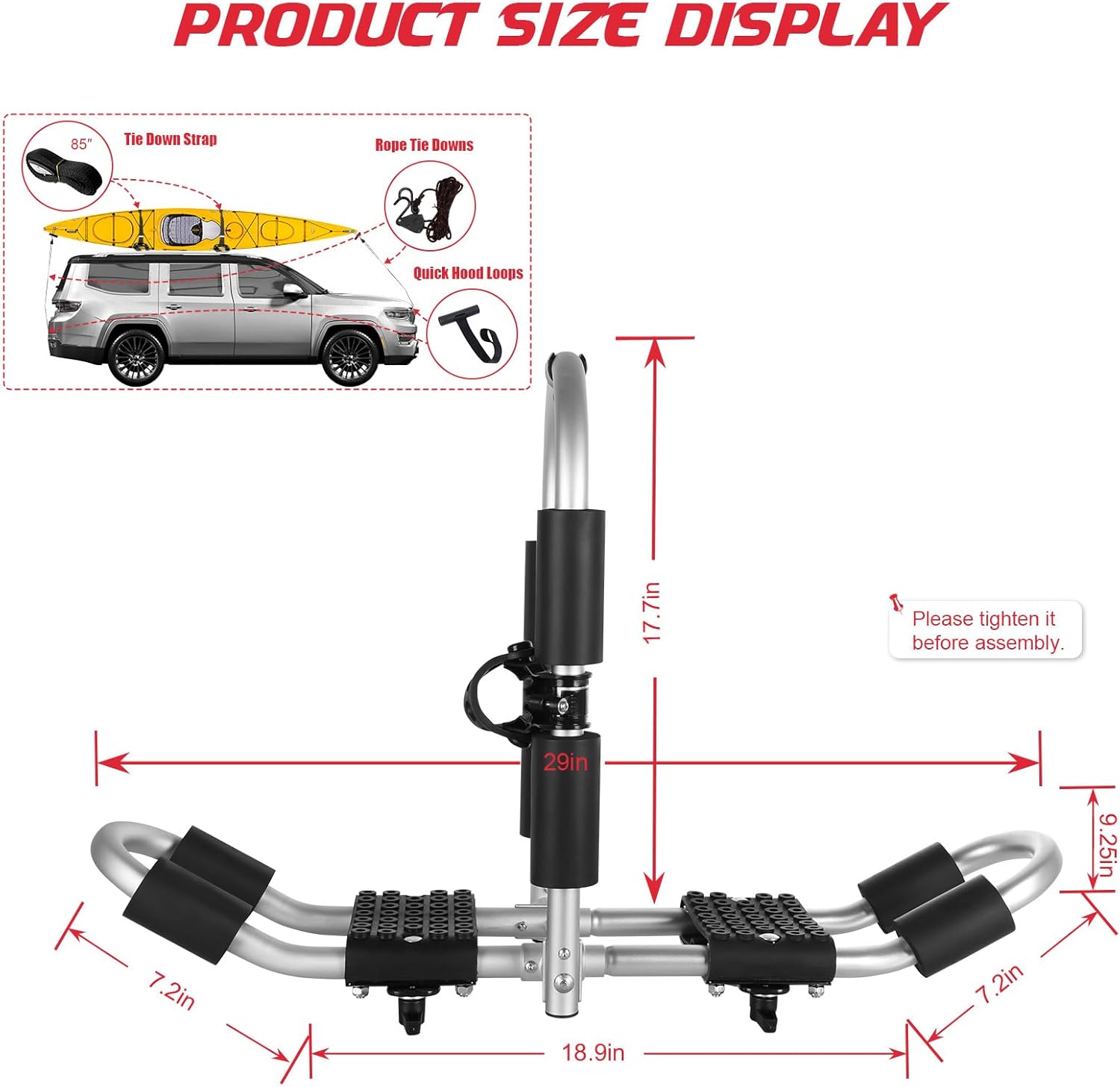 - ă2 In 1 Designă The rack features a 2-in-1 design for easy installation and robustness.Two kayaks/canoes/boats are carried at the same time, which requires 4 traditional style racks, We only need 2, which is more convenient and easy to enjoy your holiday.