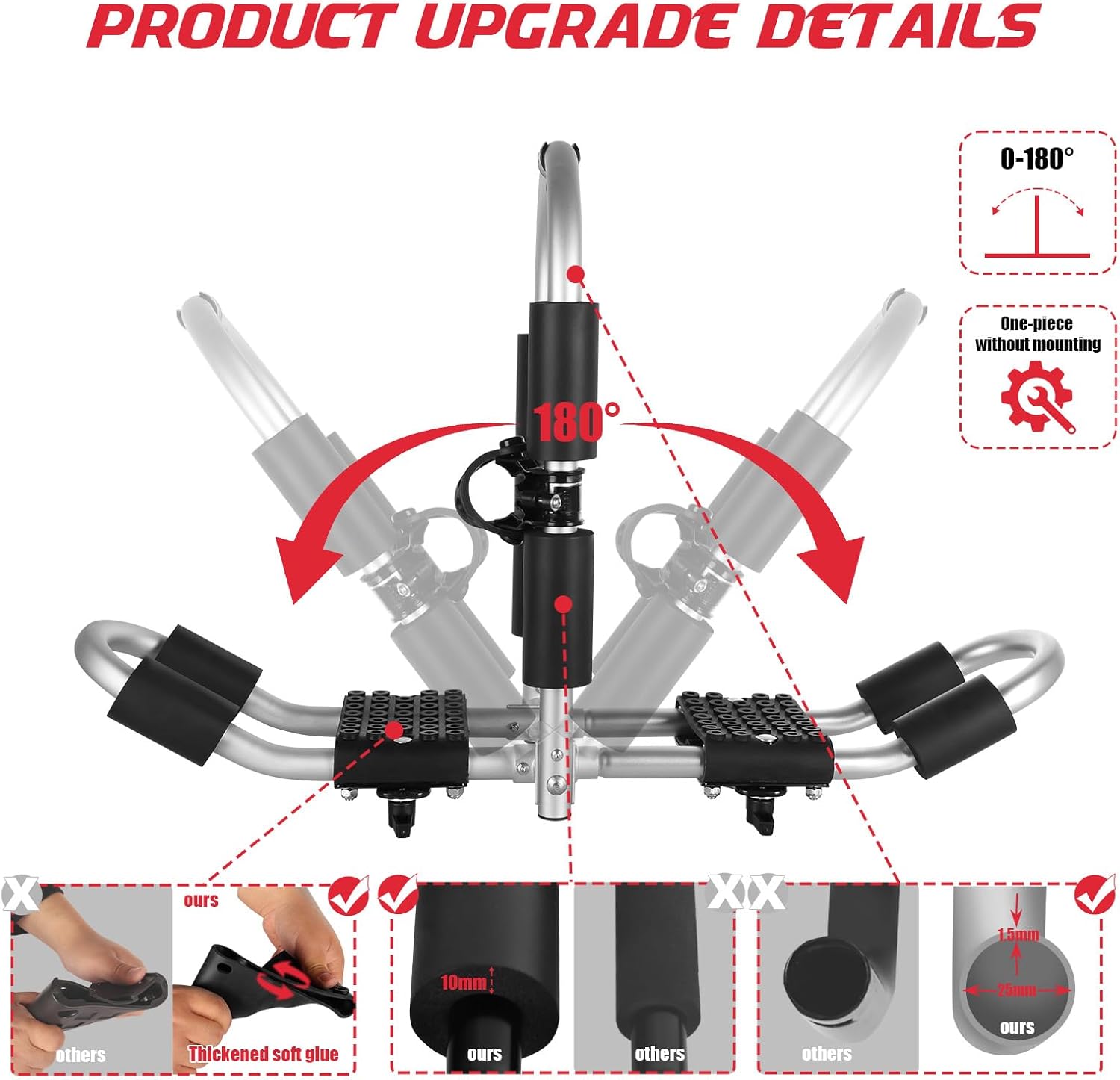 - ăProtection DesignăThe folding kayak carrier features exquisite craftsmanship with rubber pedals and foam protectors that provide maximum protection for your kayaks, canoes, and stand-up paddle boards. It also prevents scratches on your roof bar. The 1cm thickened foam also keeps your beloved kayak from getting hurt.