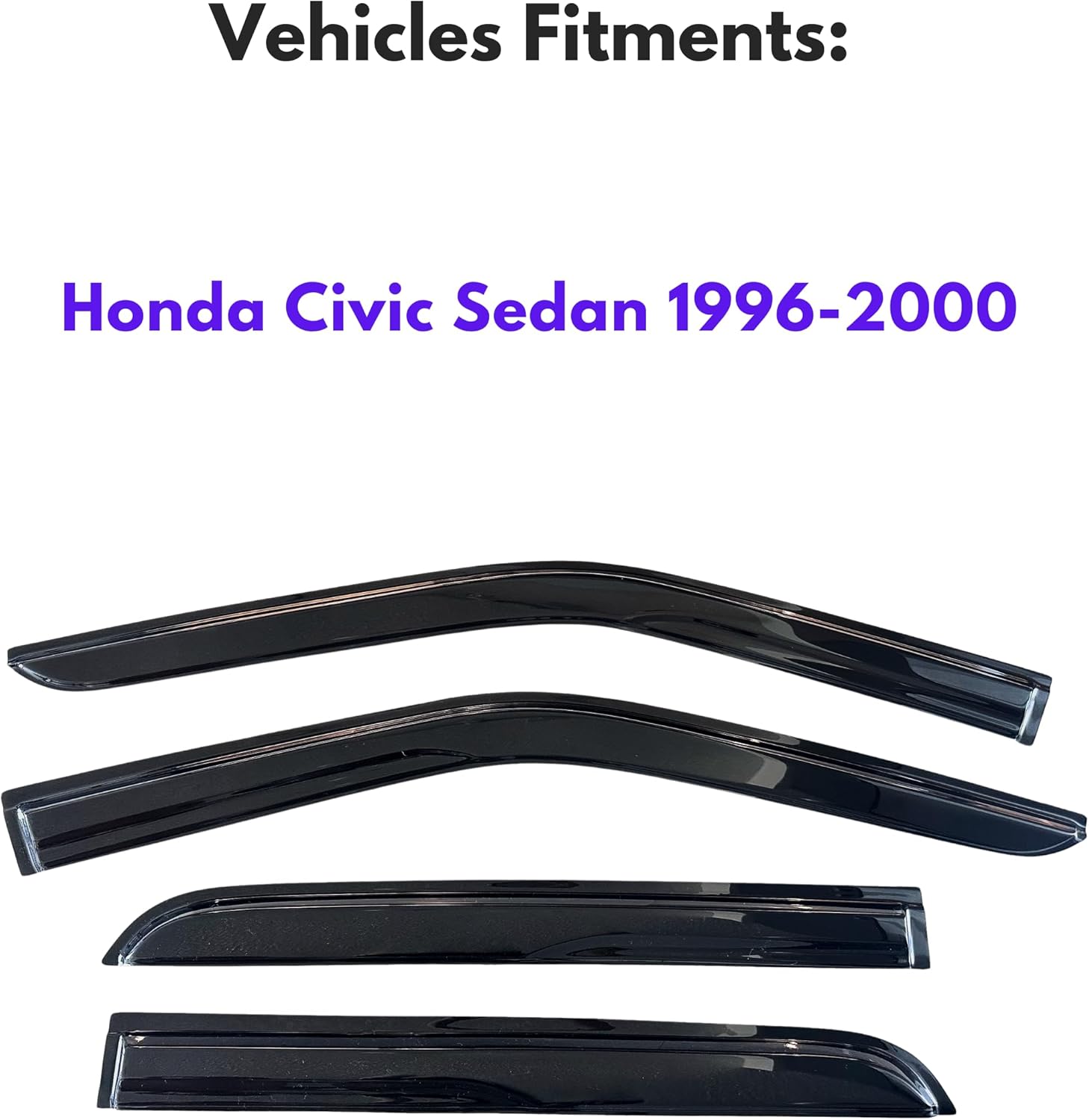 - 【Perfect Fit】KPY window visors rain guards vent deflectors compatible with Honda Civic Sedan 1996 1997 1998 1999 2000 (Mugen Style)