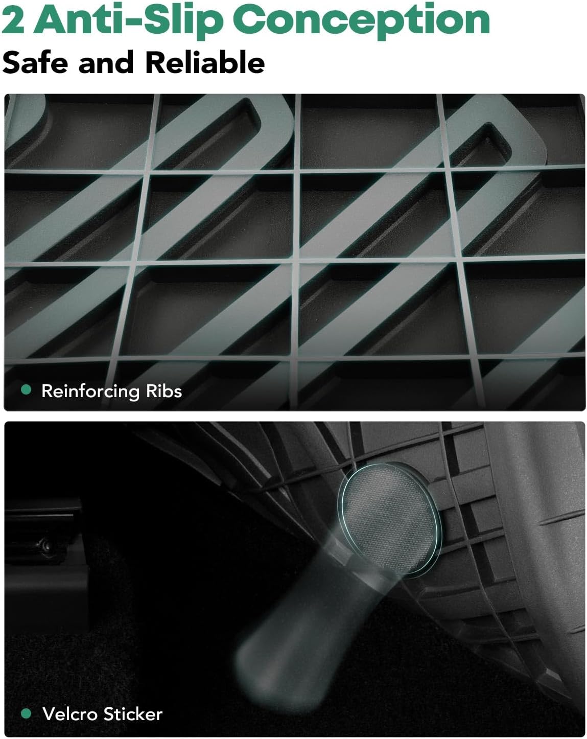 - No Safety Issues: The front and rear floor mats, front rear trunk storage liner, rear lower storage mat are made of Odorless & Healthy TPE mats. All-weather floor mats will not crack in winter. And floor mats will not be deformed or damaged during shipping with double packing